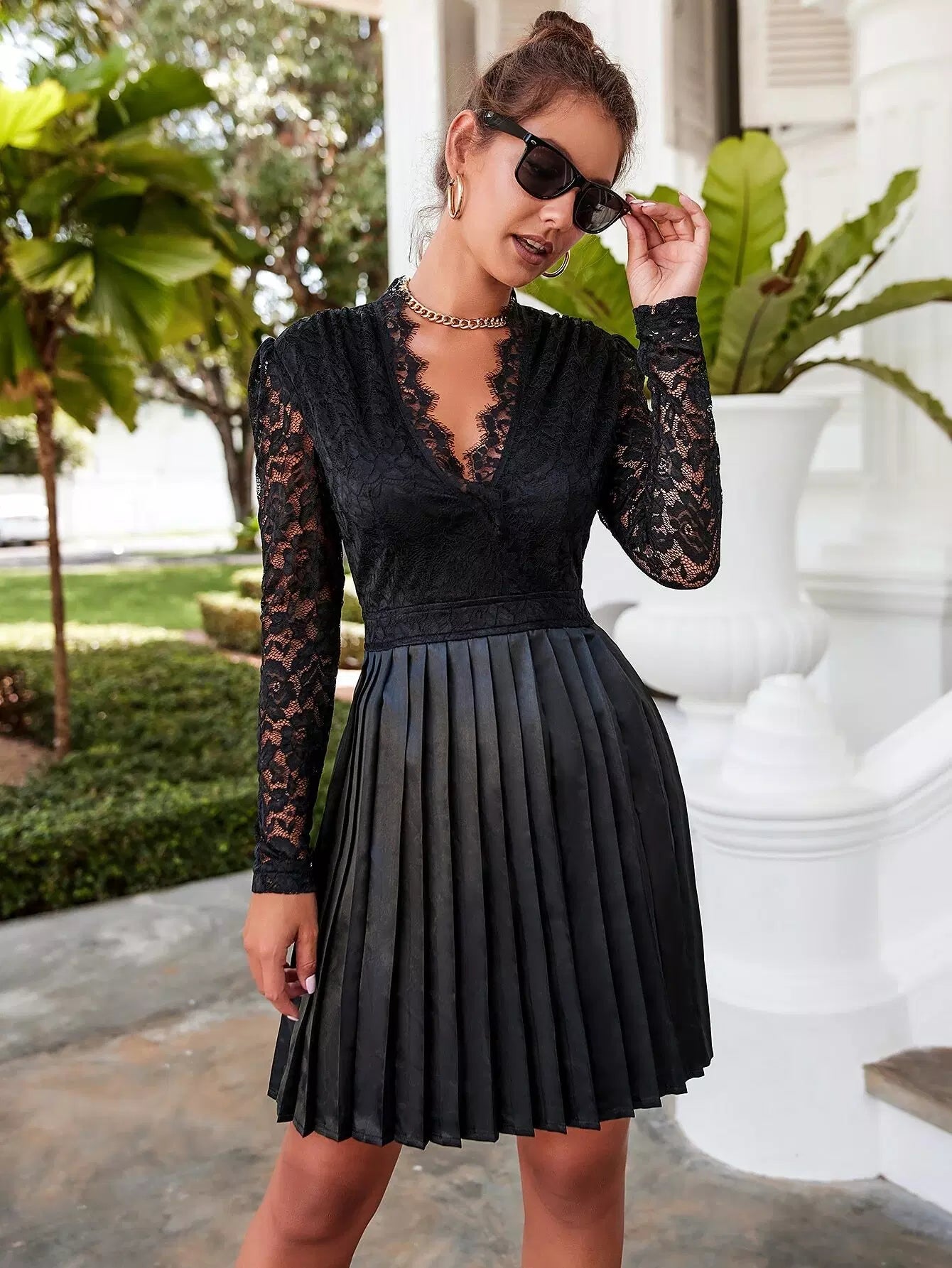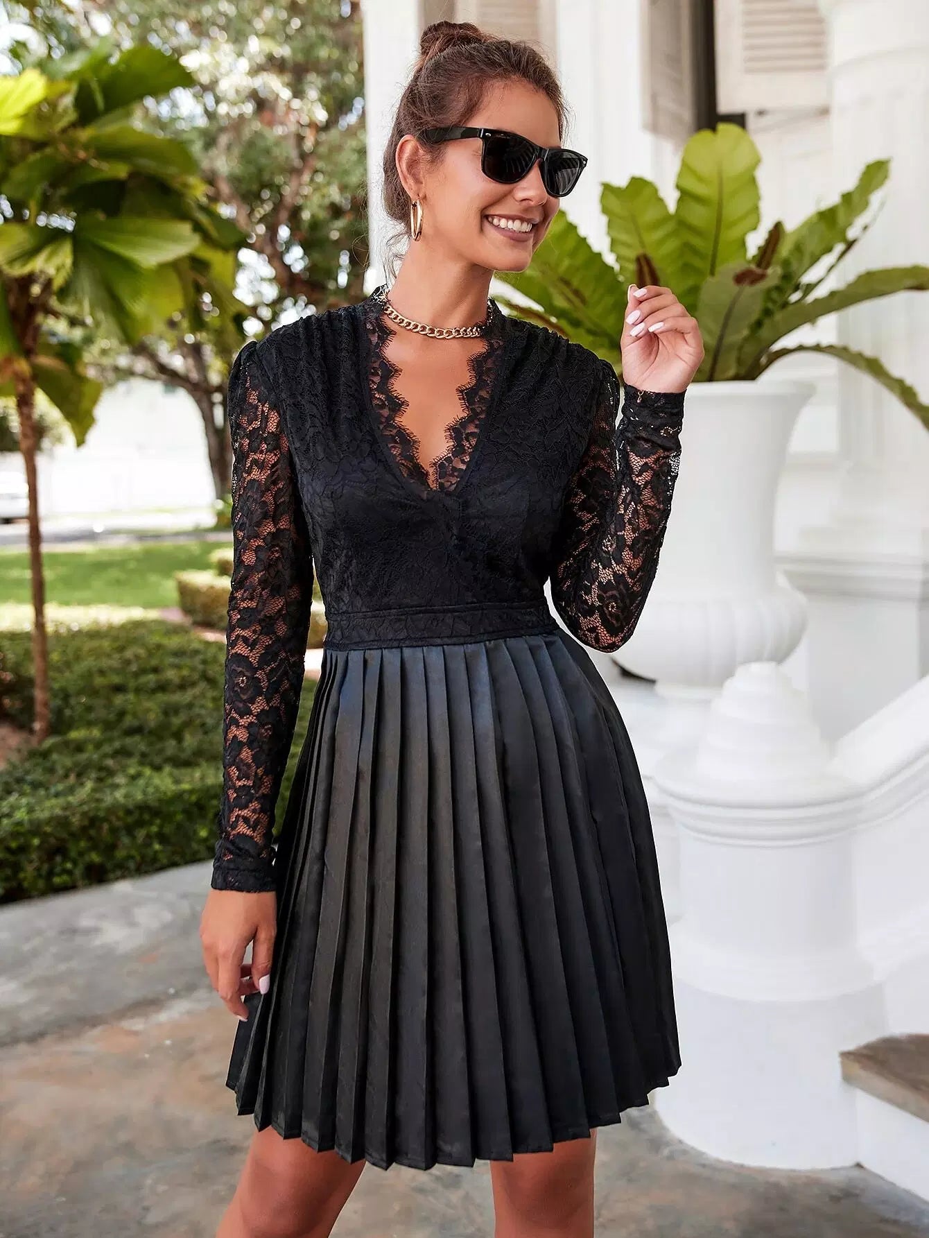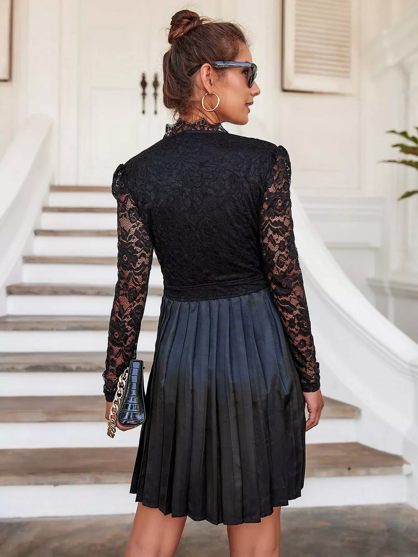 فستان بطيات من الدانتيل على شكل رموش العينين