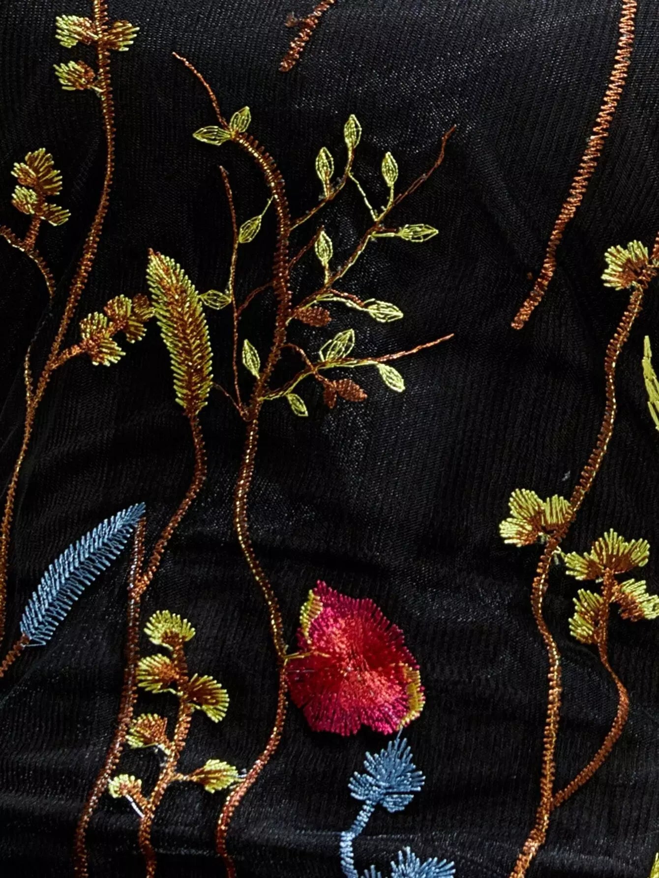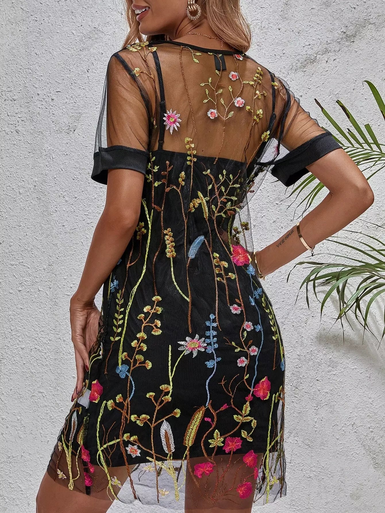 فستان شبكي مطرز بتطريز زهري متباين