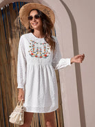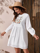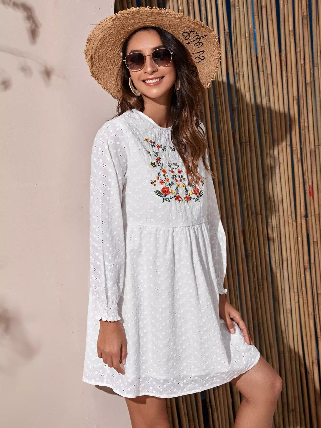 فستان سكيفي سموك مطرز بالزهور