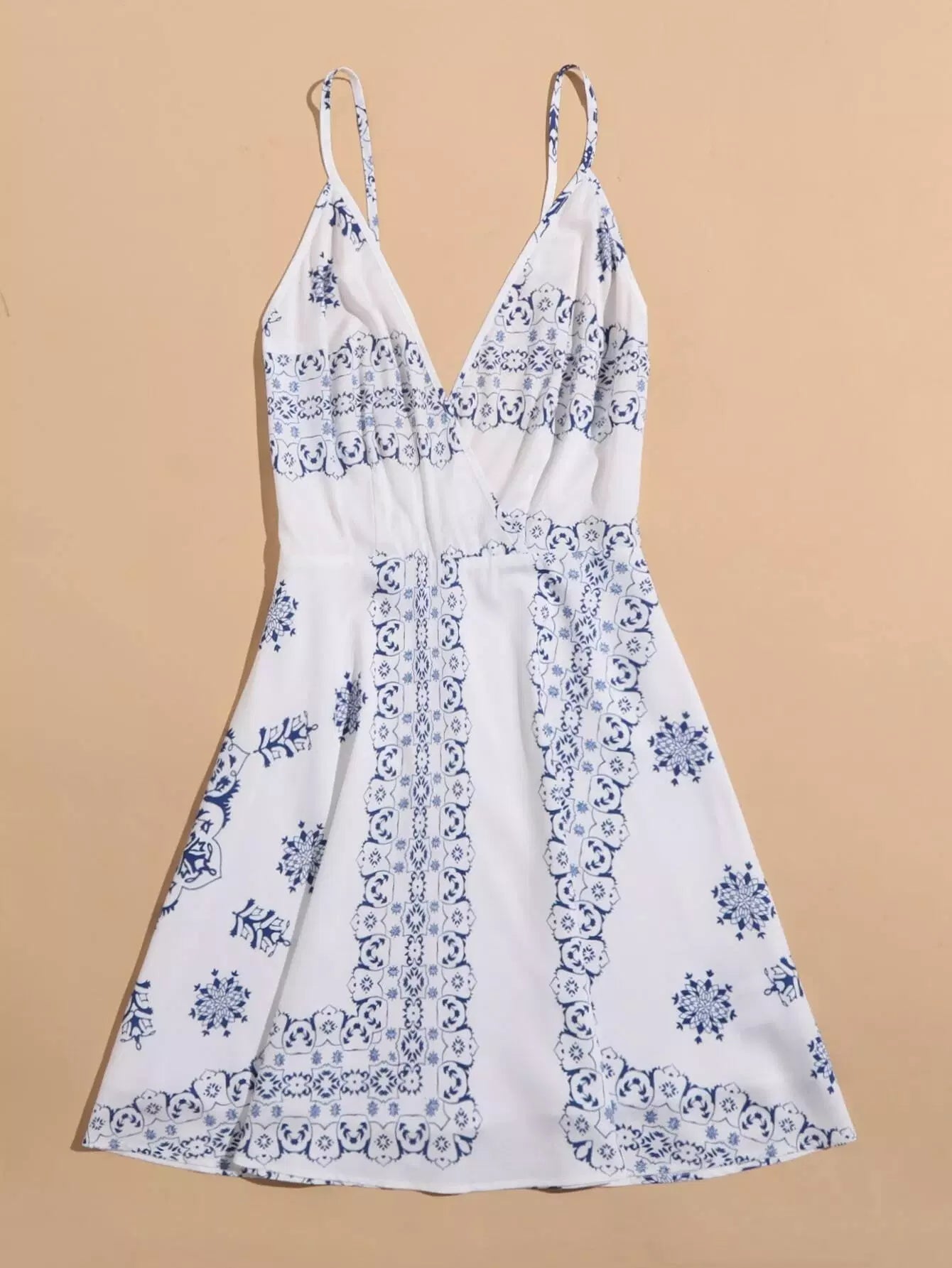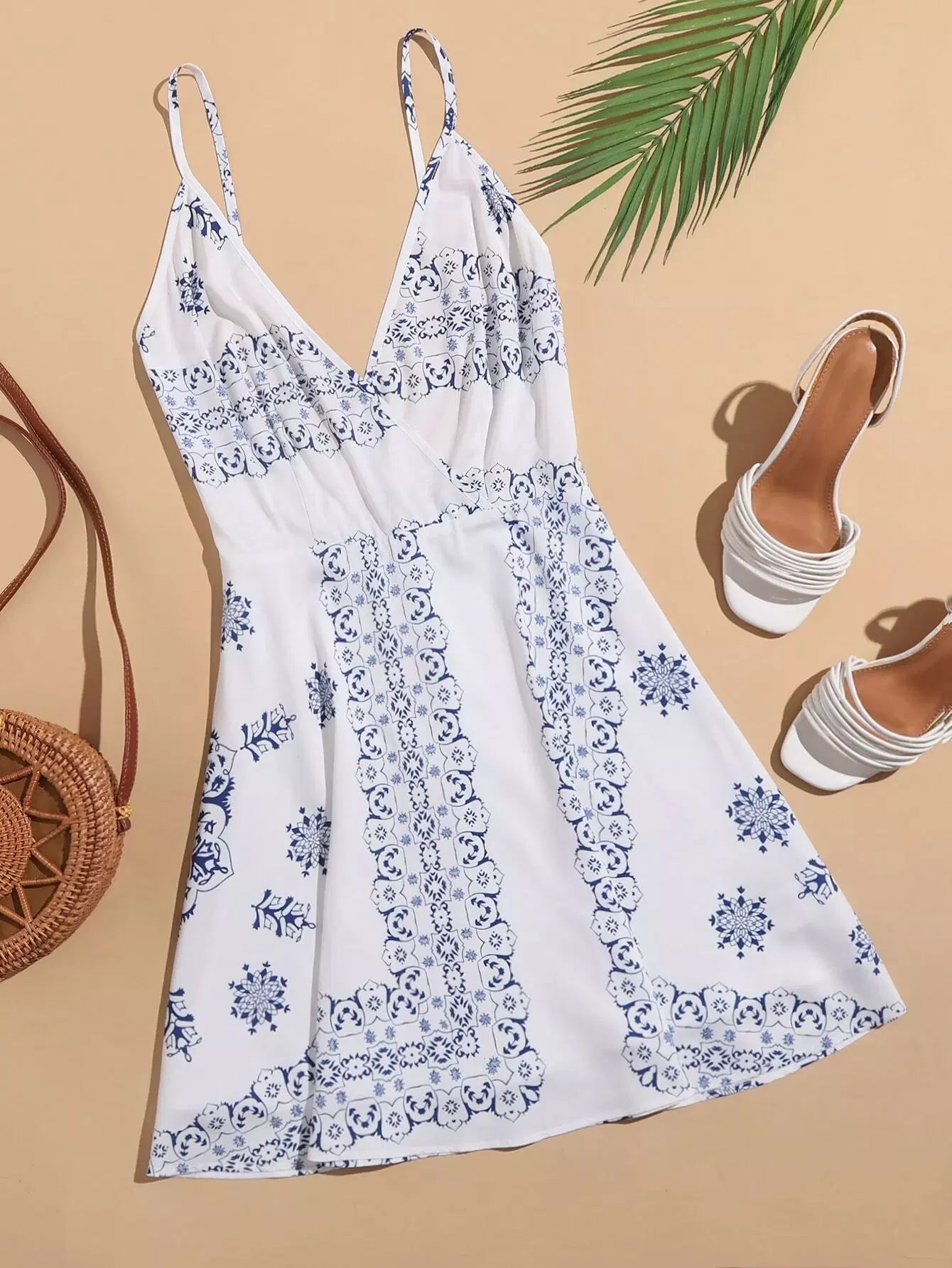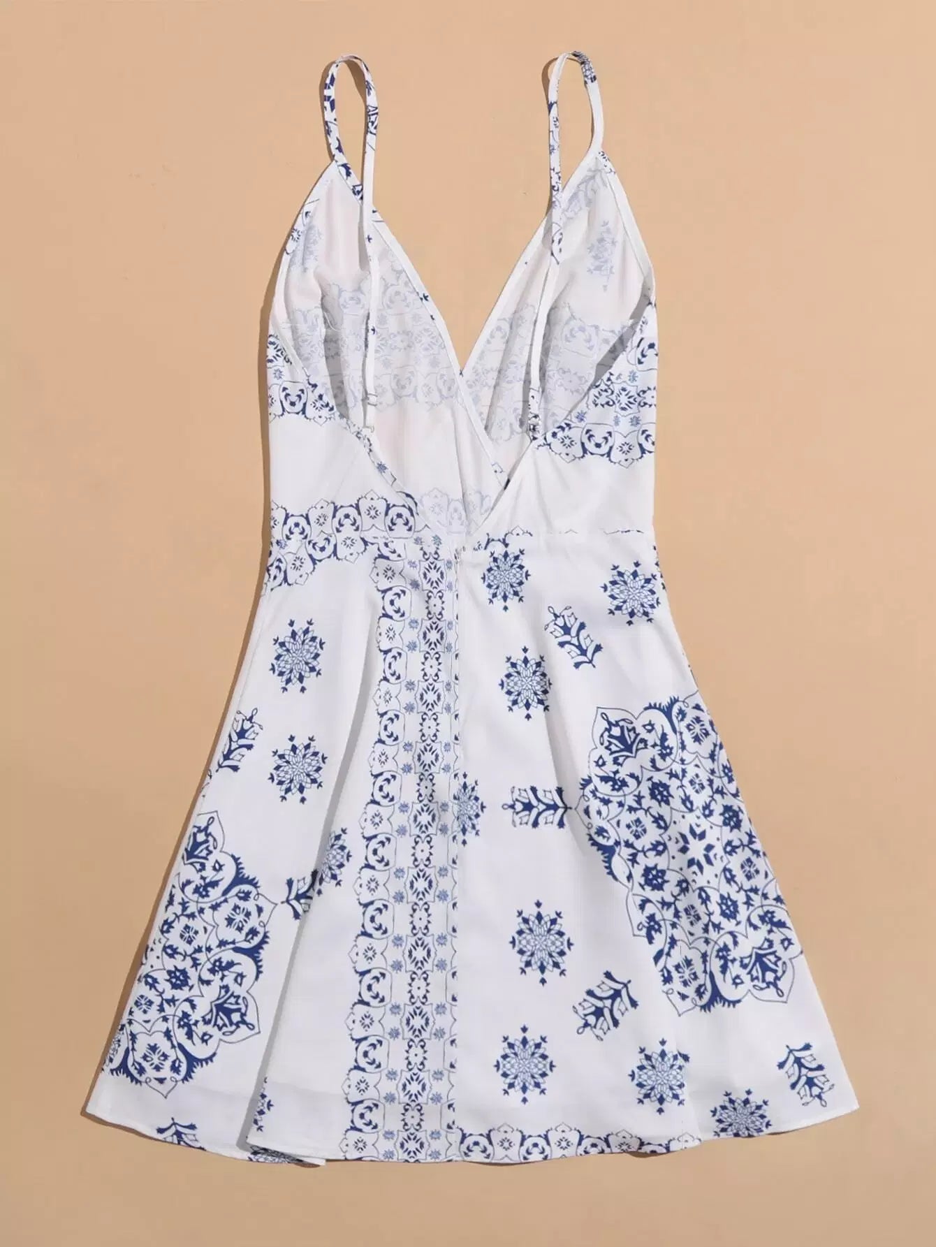 فستان قصير عاري الظهر بطبعة زهور مطبوع من الأمام