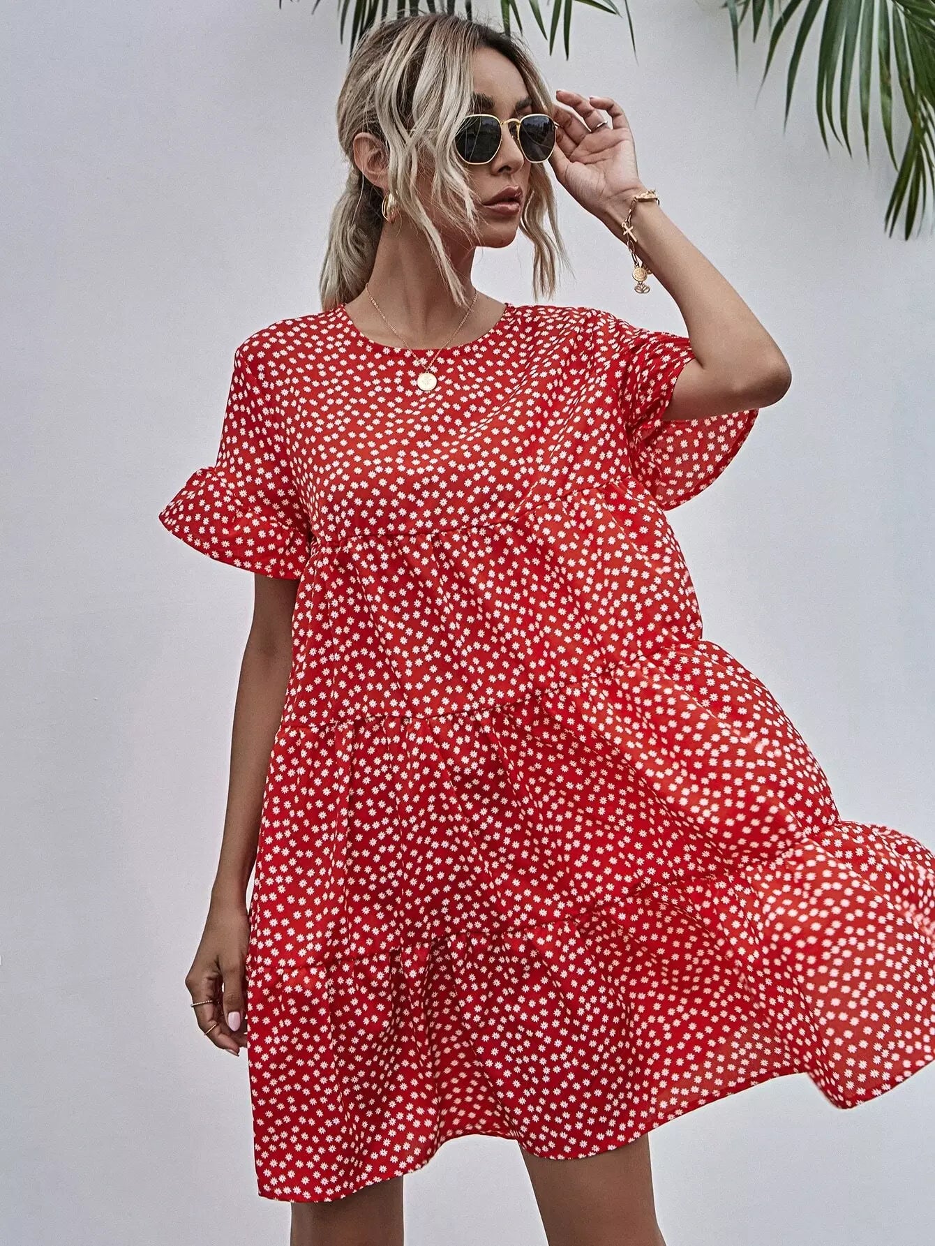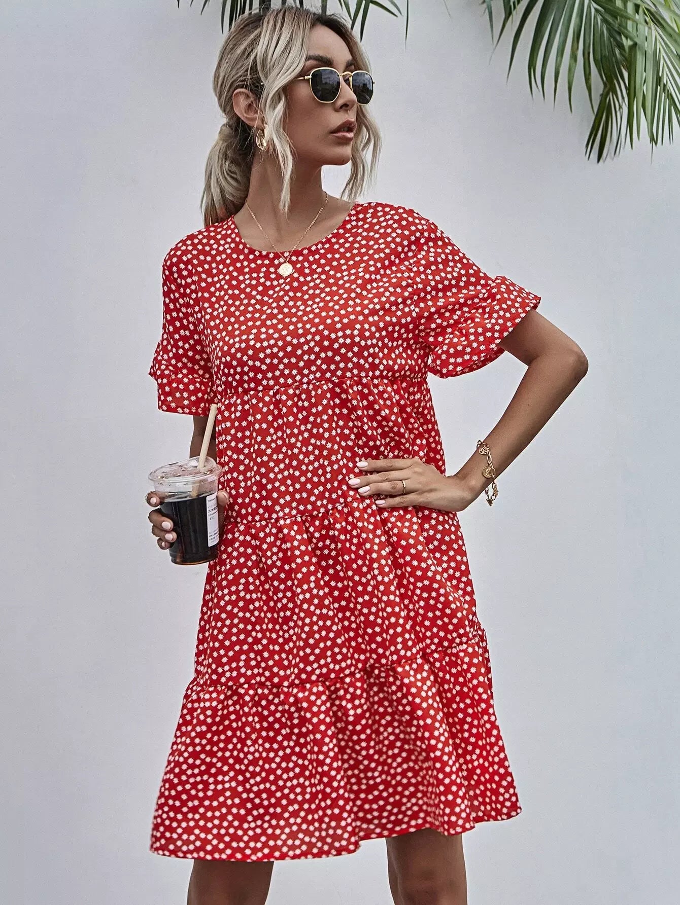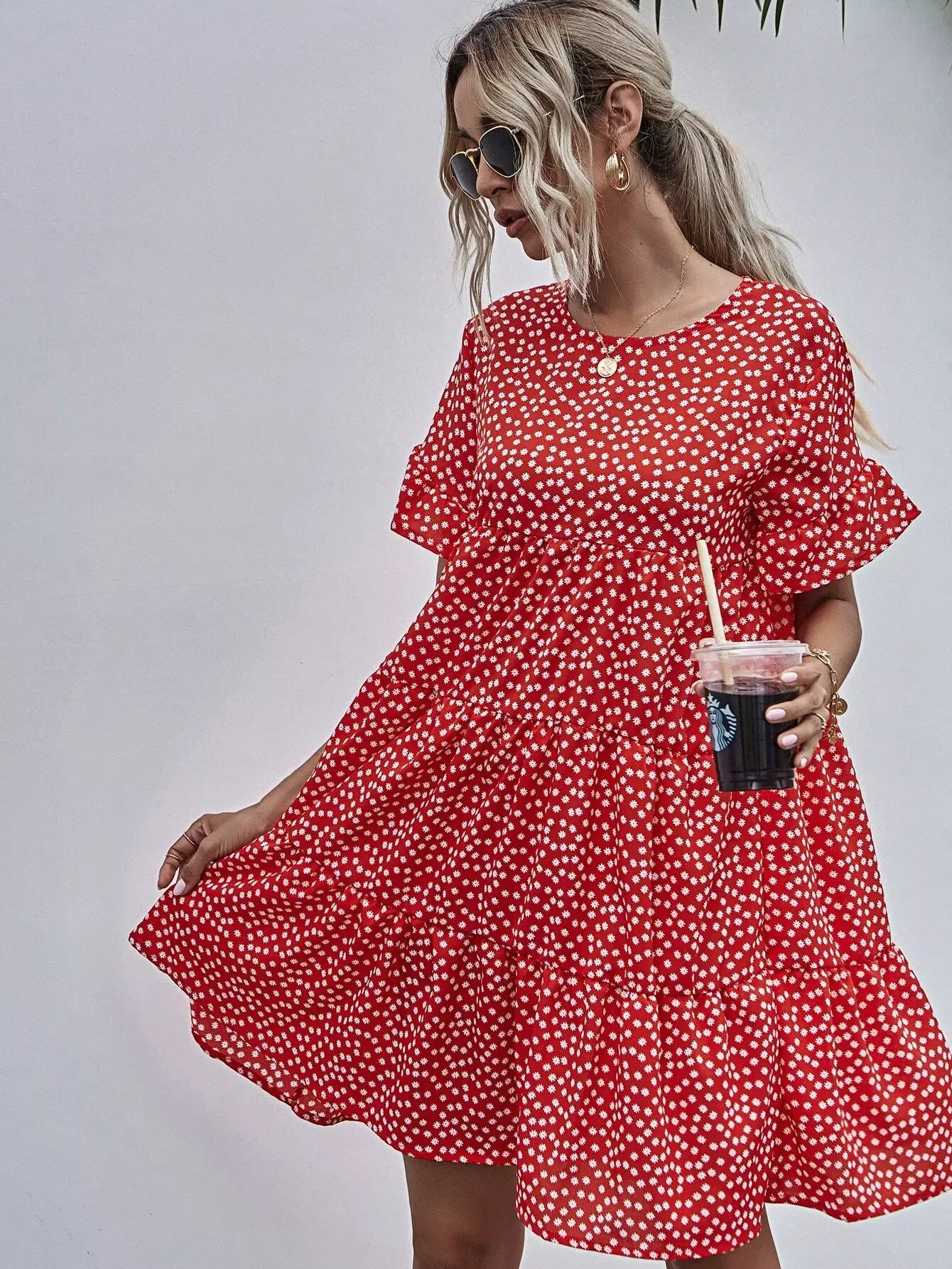 فستان بأكمام منفوشة بأزهار ديتسي سموك