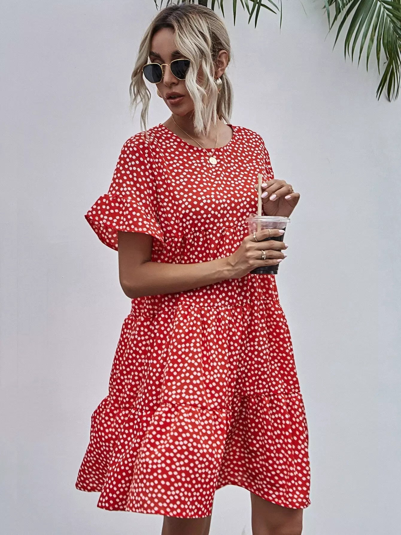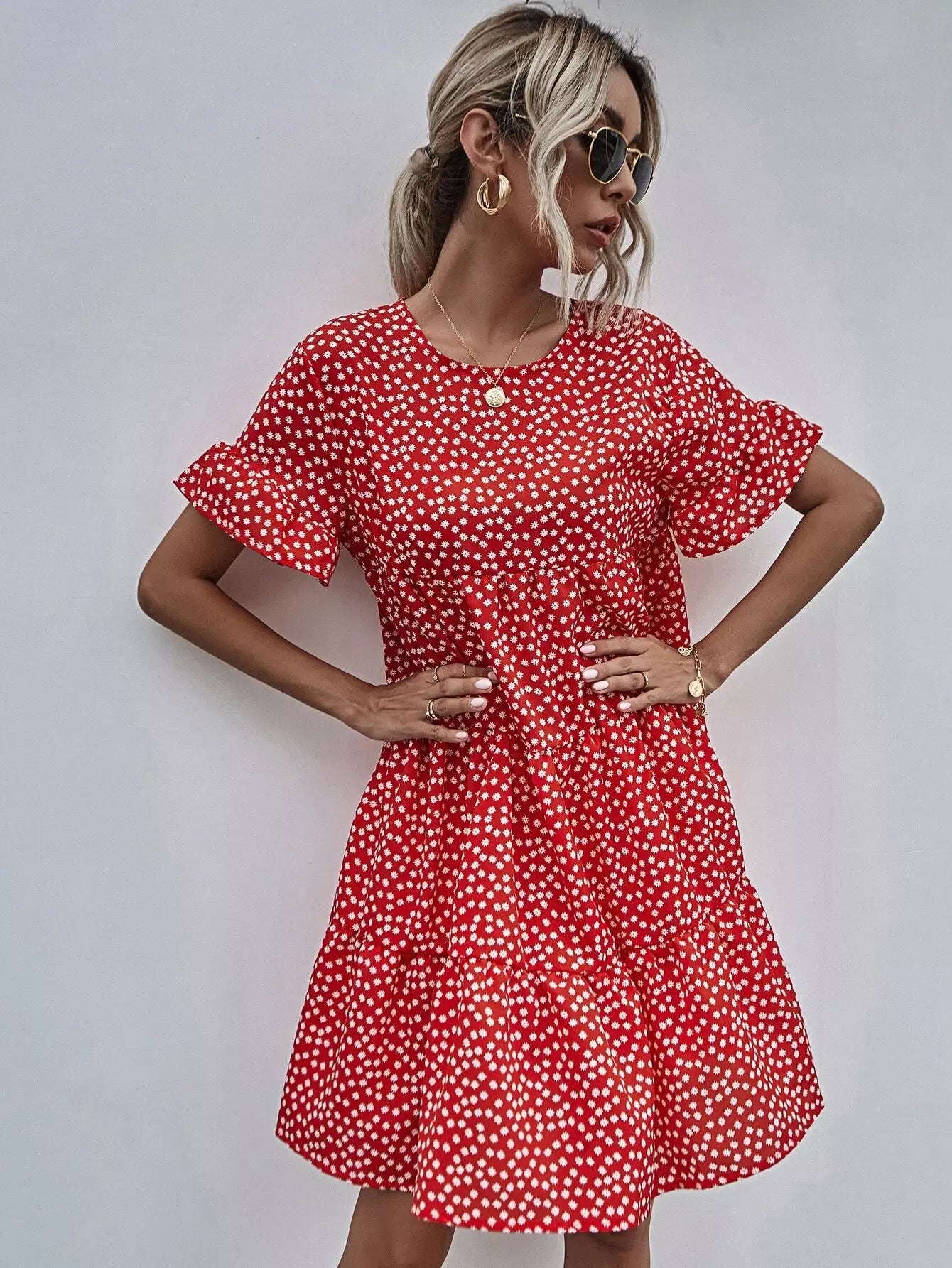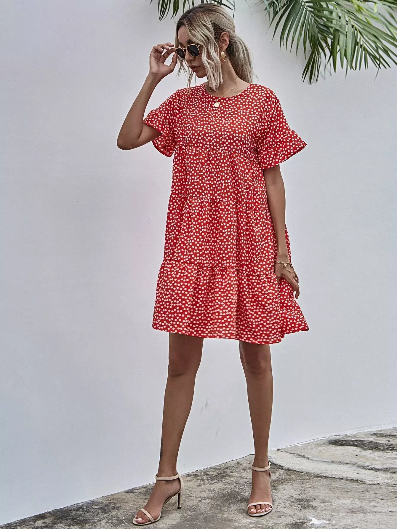 فستان بأكمام منفوشة بأزهار ديتسي سموك