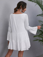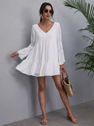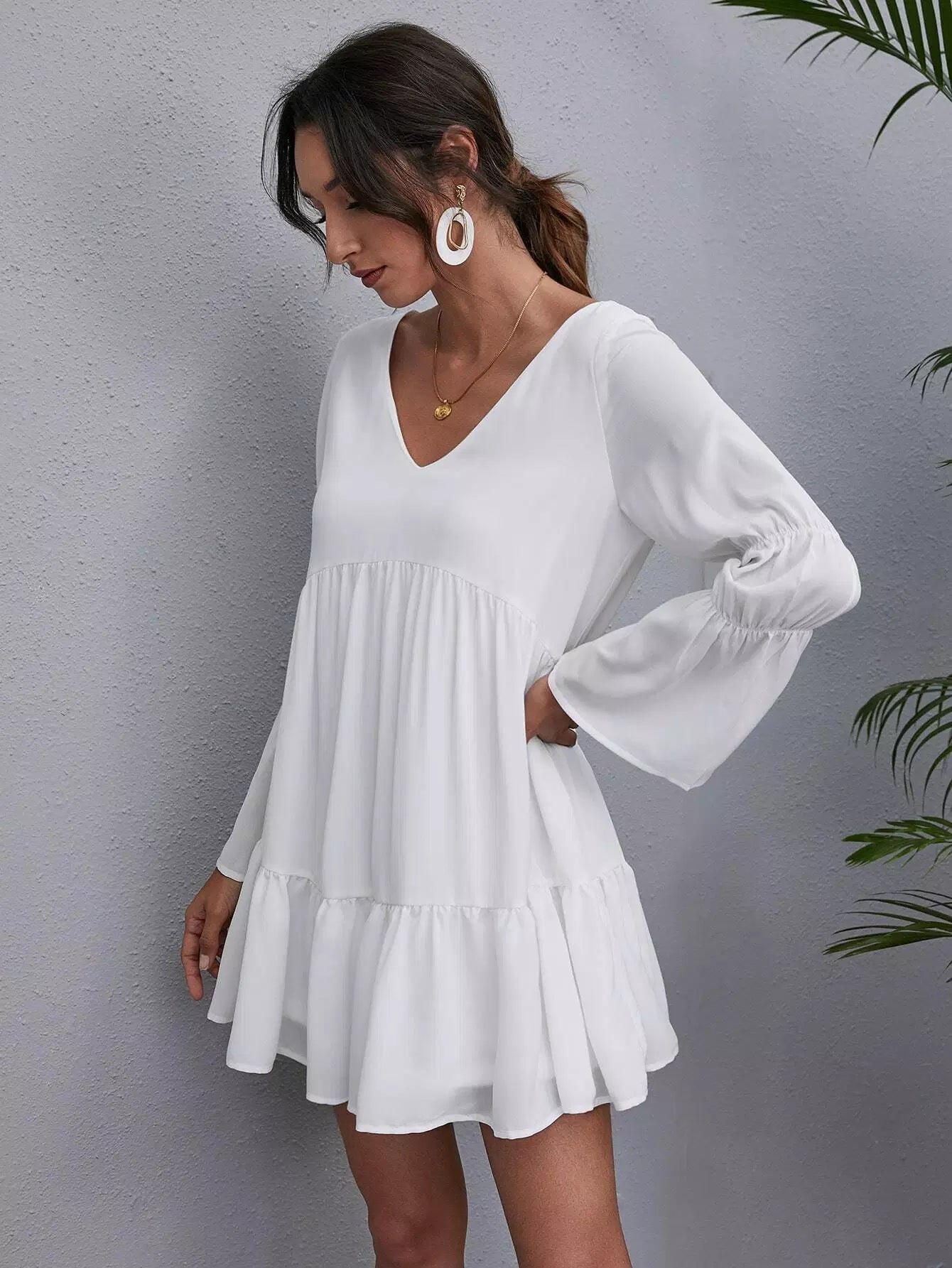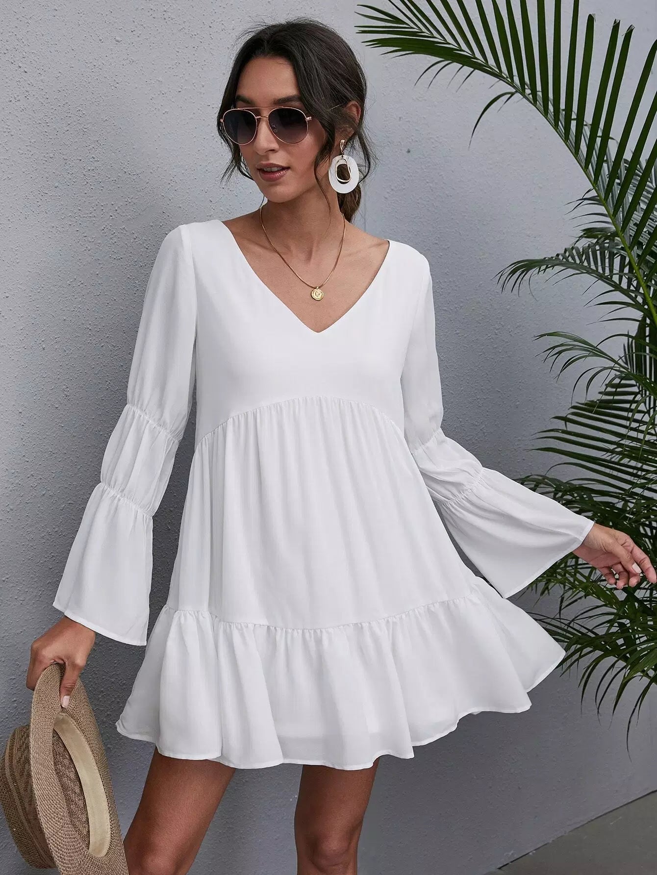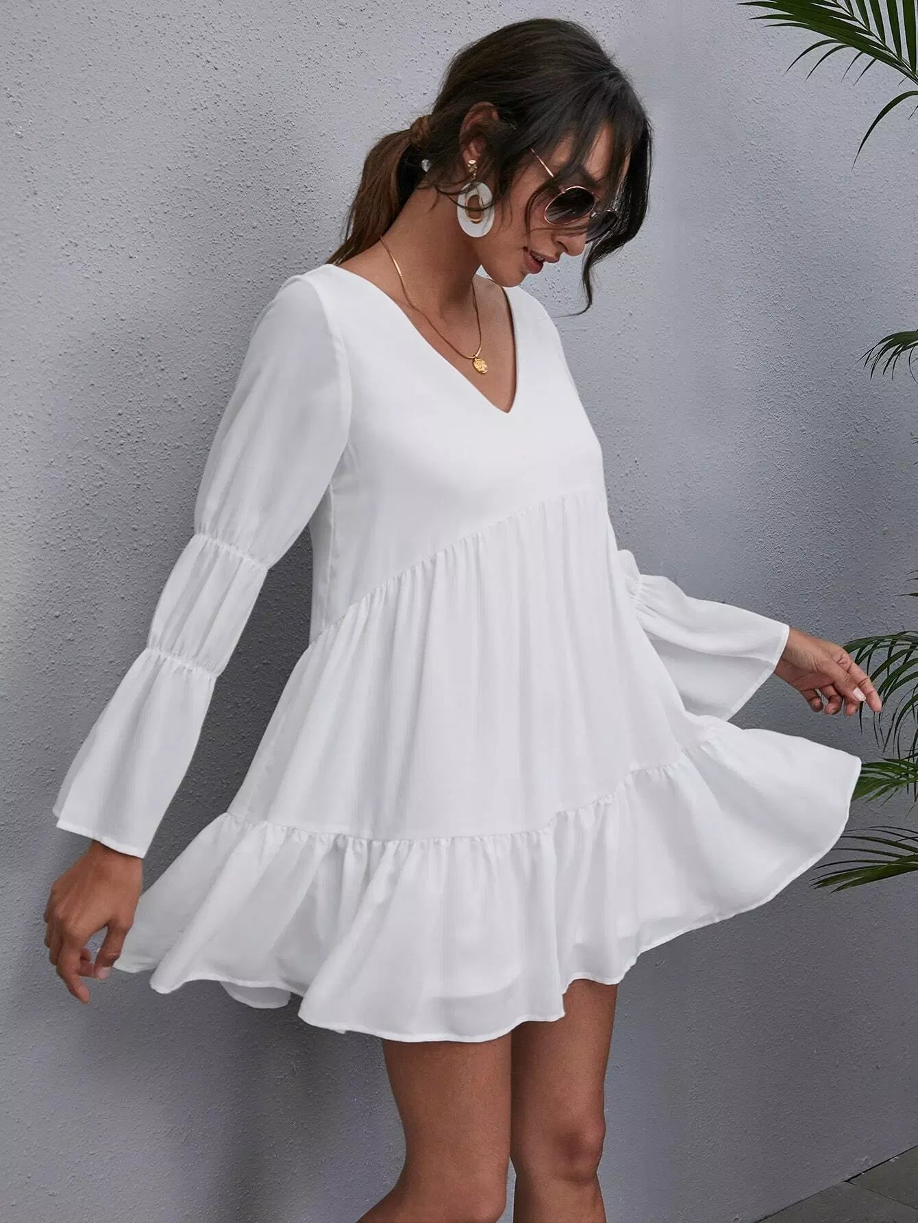 فستان سادة بأكمام مكشكشة مكشكشة الحواف