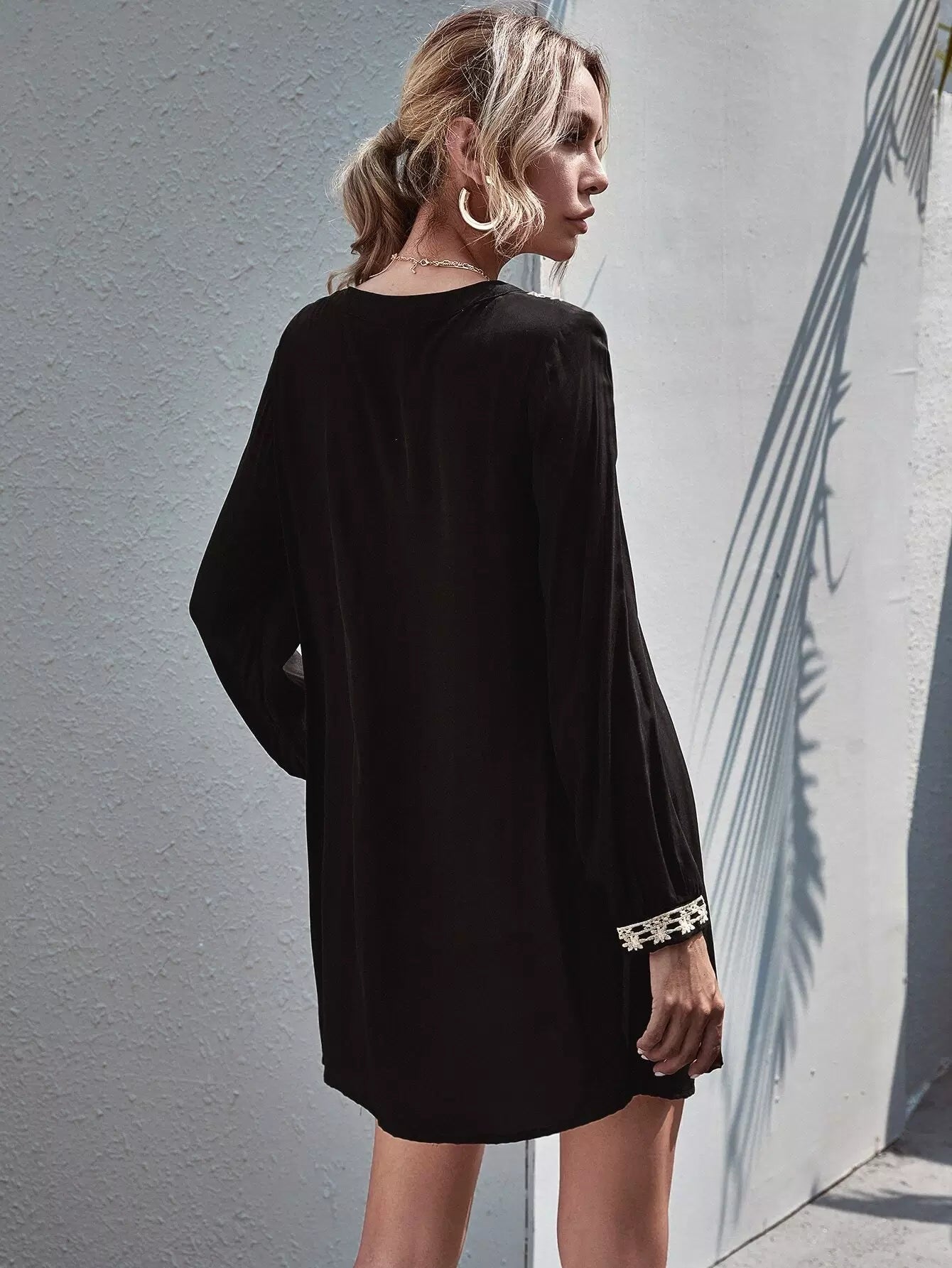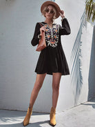 فستان تونيك مطرز بالزهور برقبة مزخرف بالورود