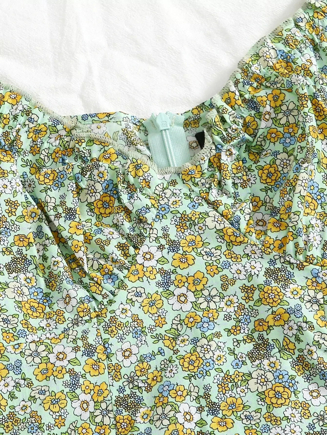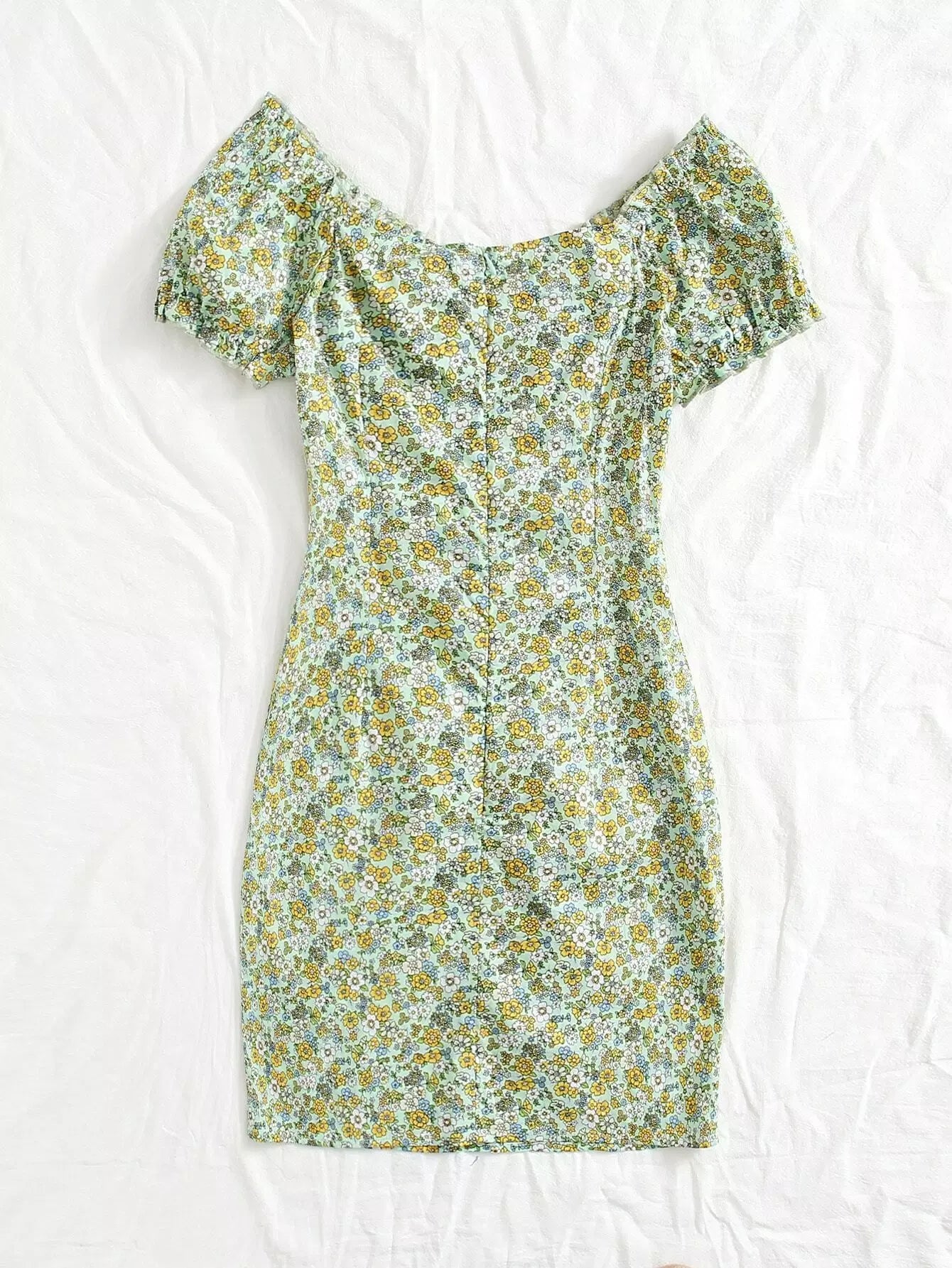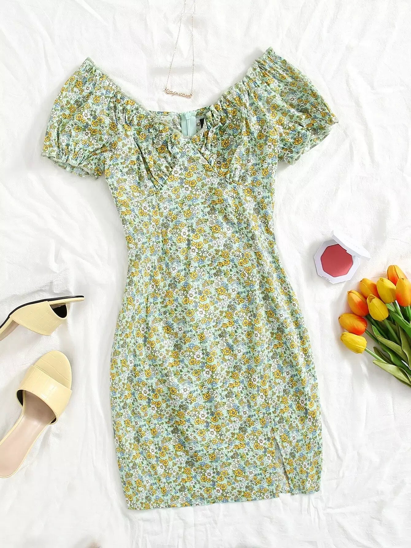 للنساء - فستان مزين بطبعات زهور وأطراف مكشكشة