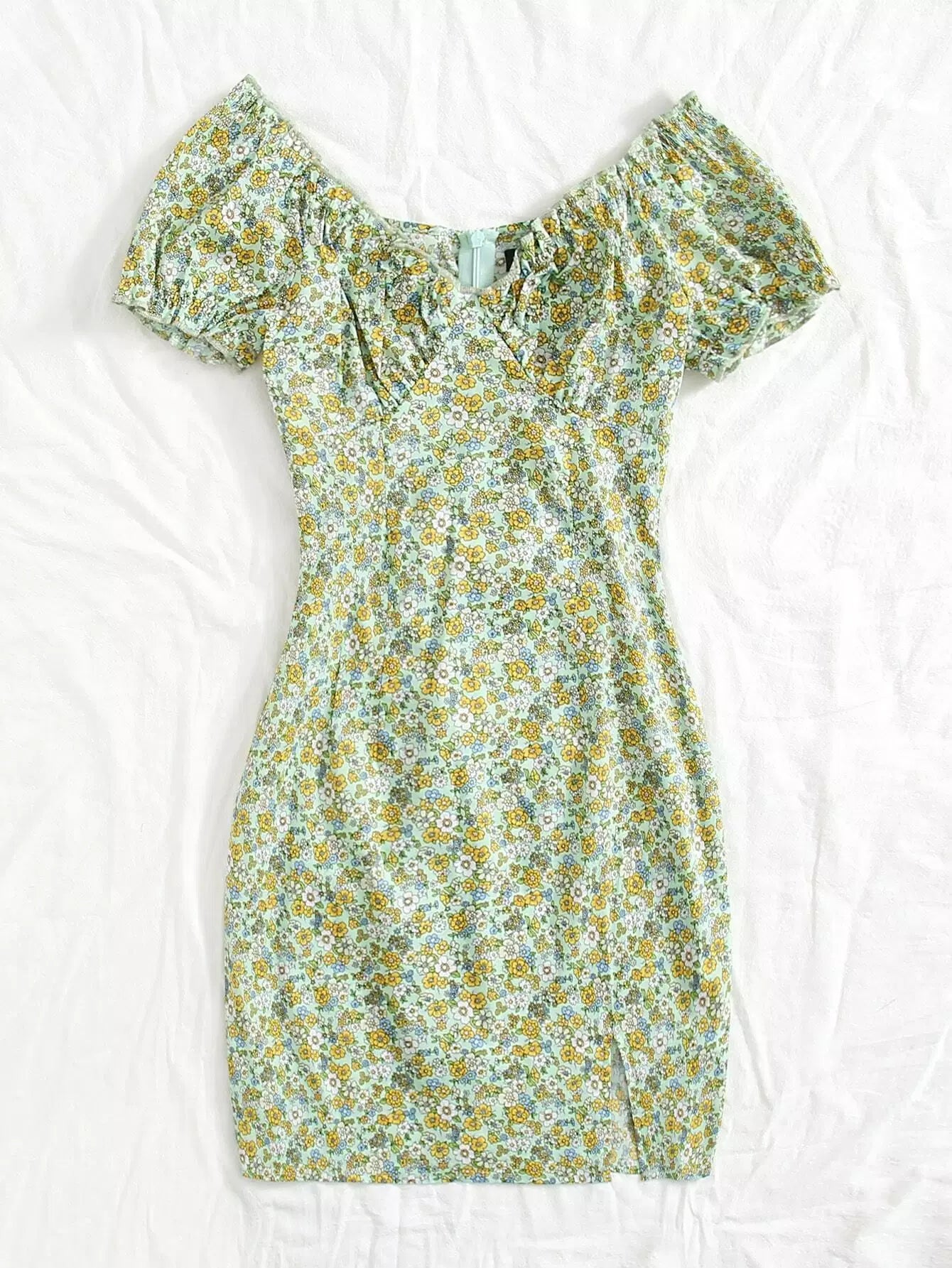 فستان مزين بكشكش مزركش بطبعة زهور
