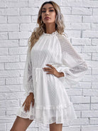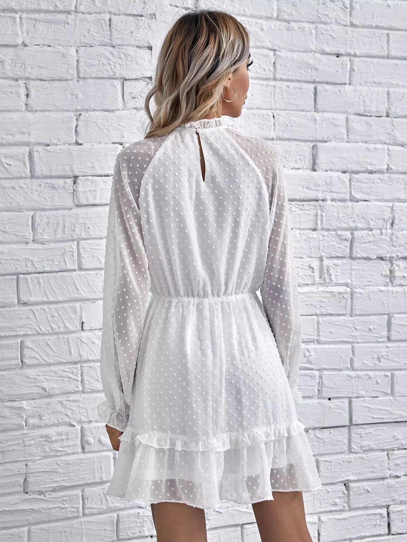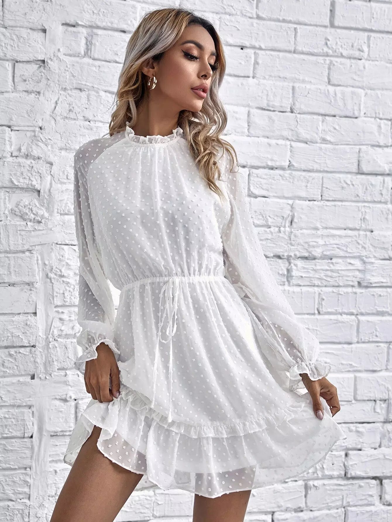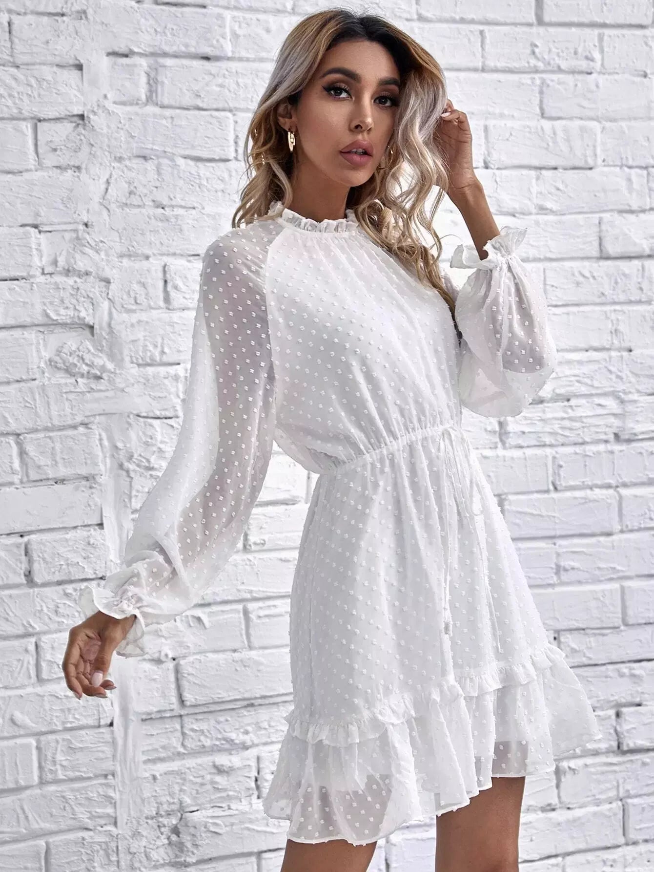 فستان كشكش بأكمام راجلان بأكمام راجلان عقدة الخصر منقّط سويسري