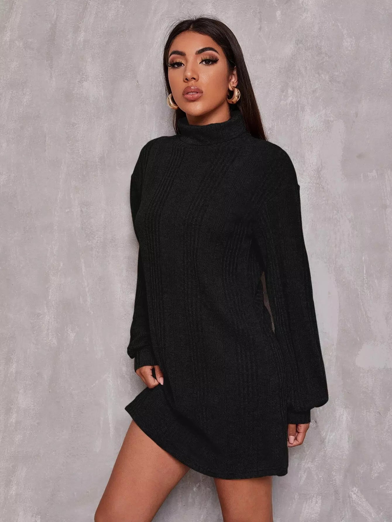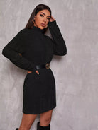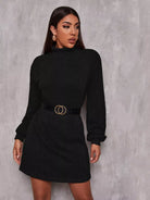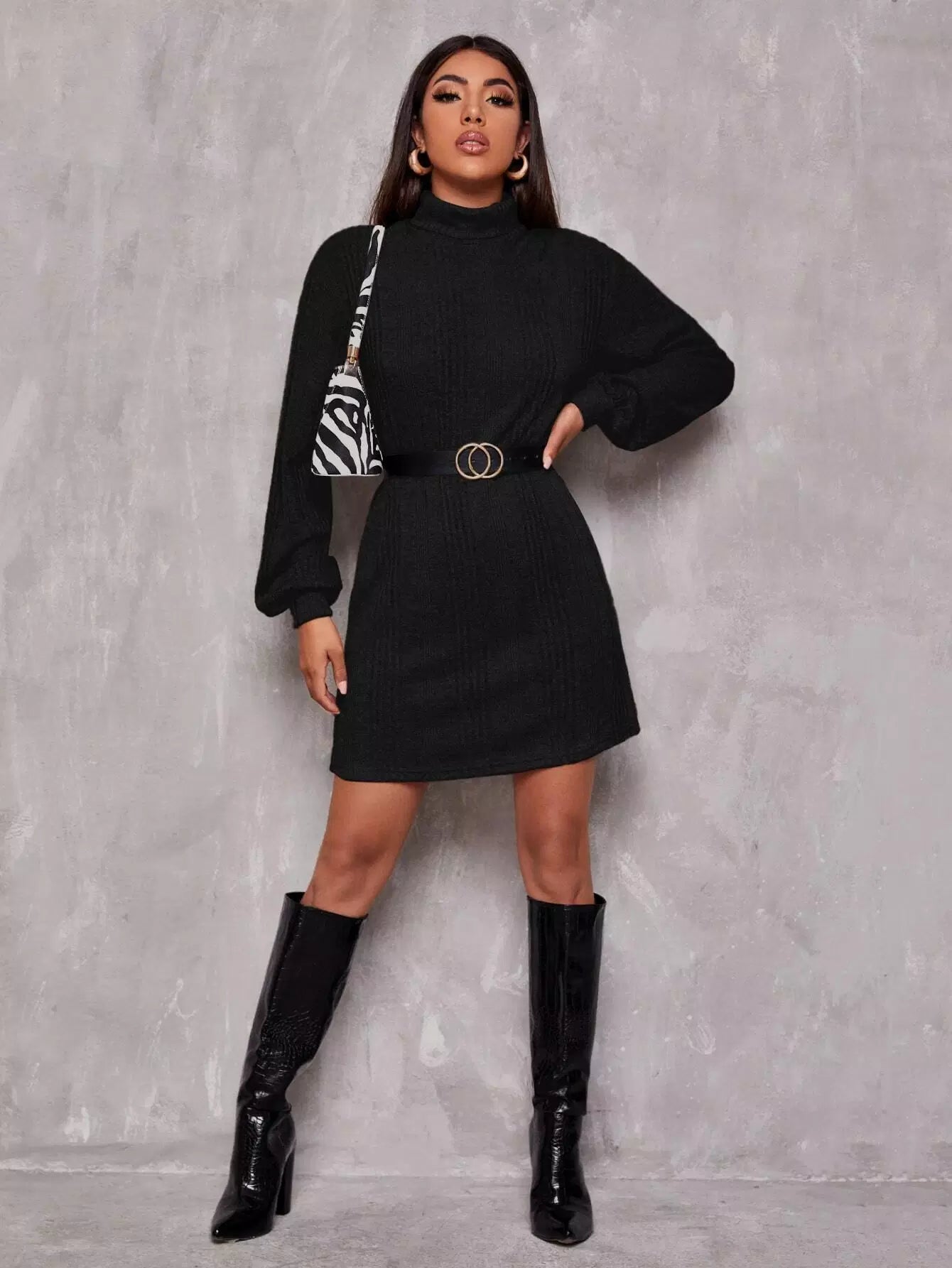 فستان بياقة واسعة وأكمام واسعة بدون حزام