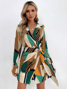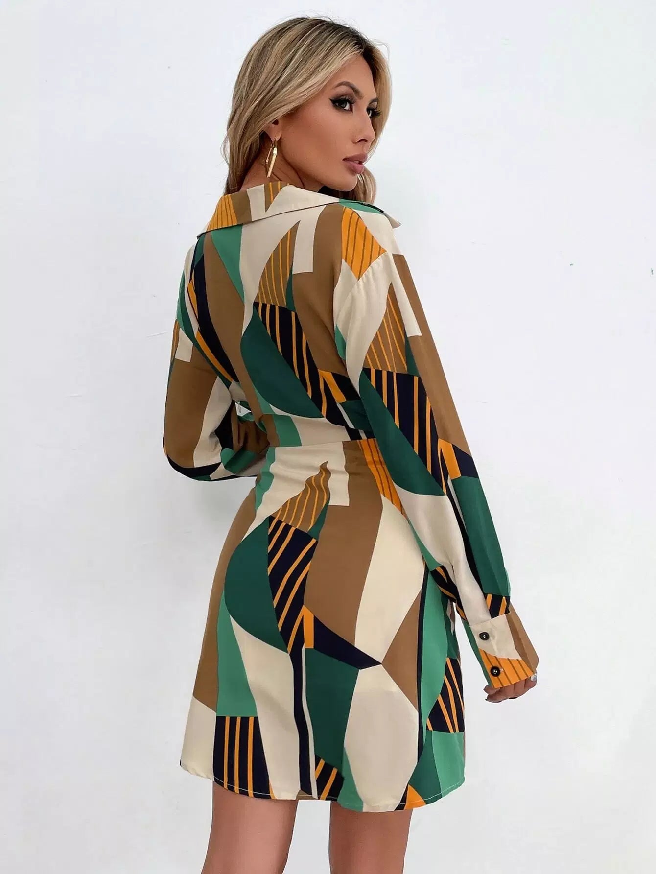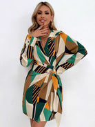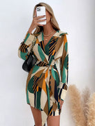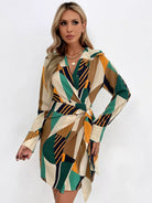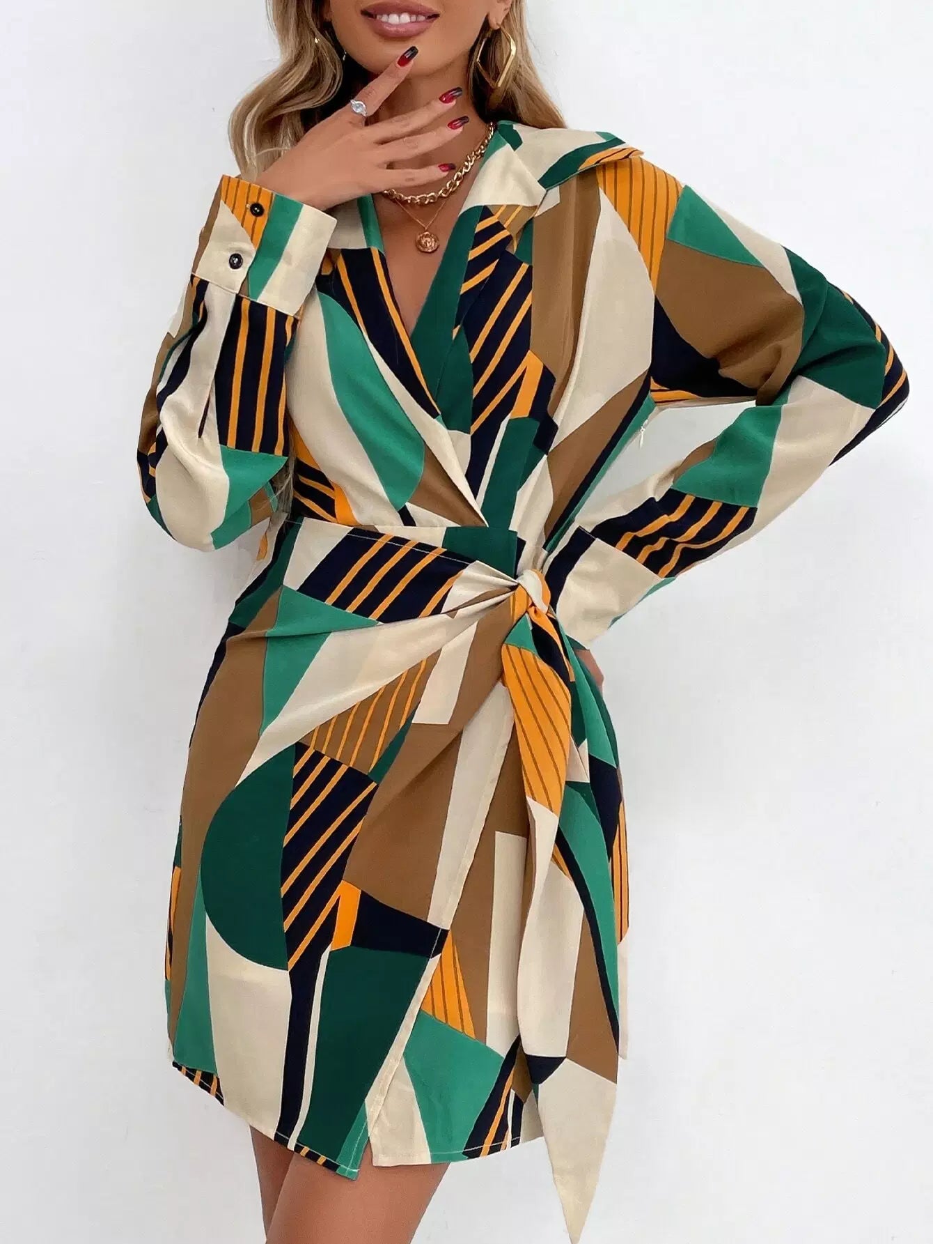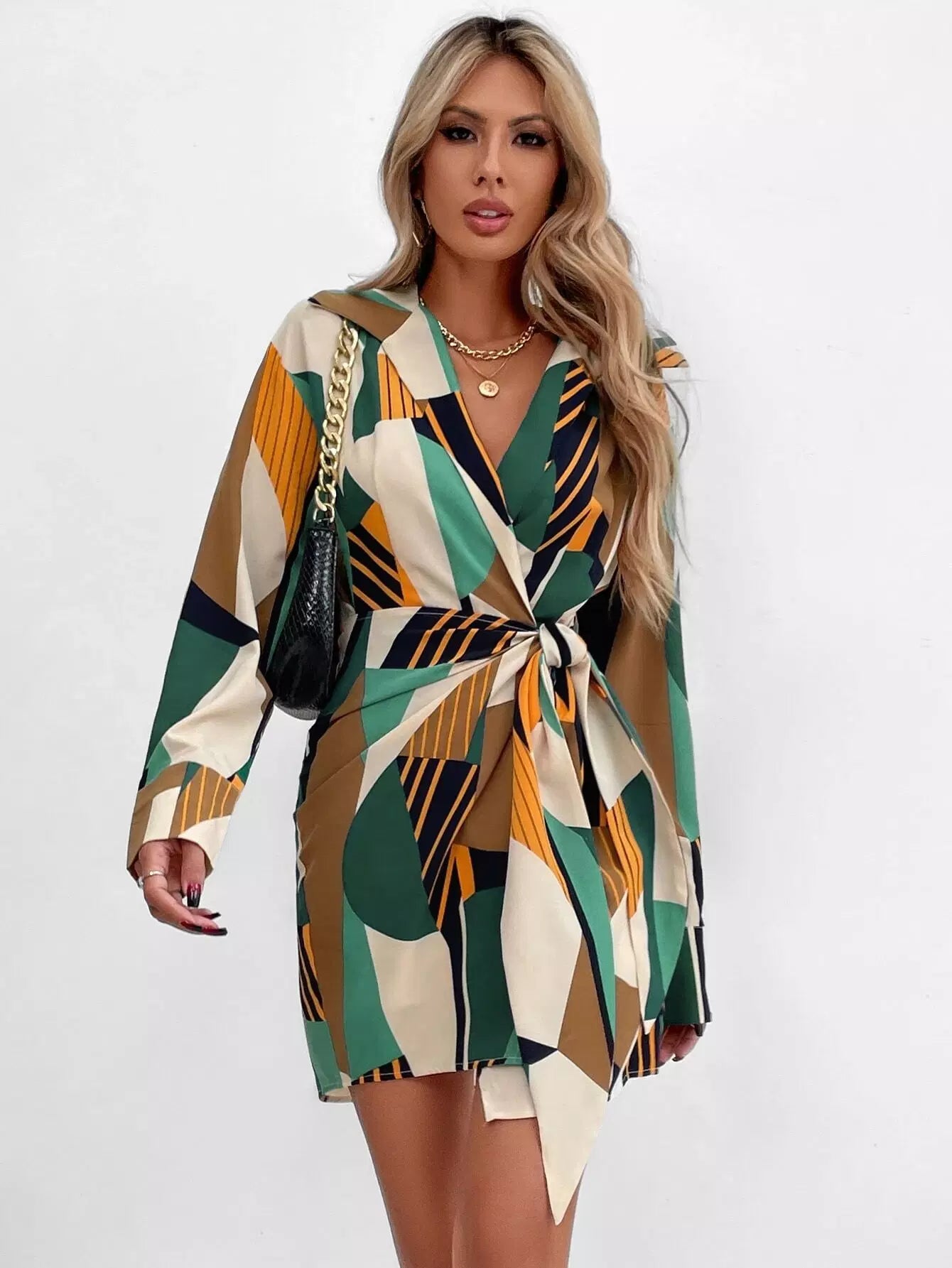 فستان بطبعة جيو مطبوع على الكتف منسدل بربطة عنق جانبية