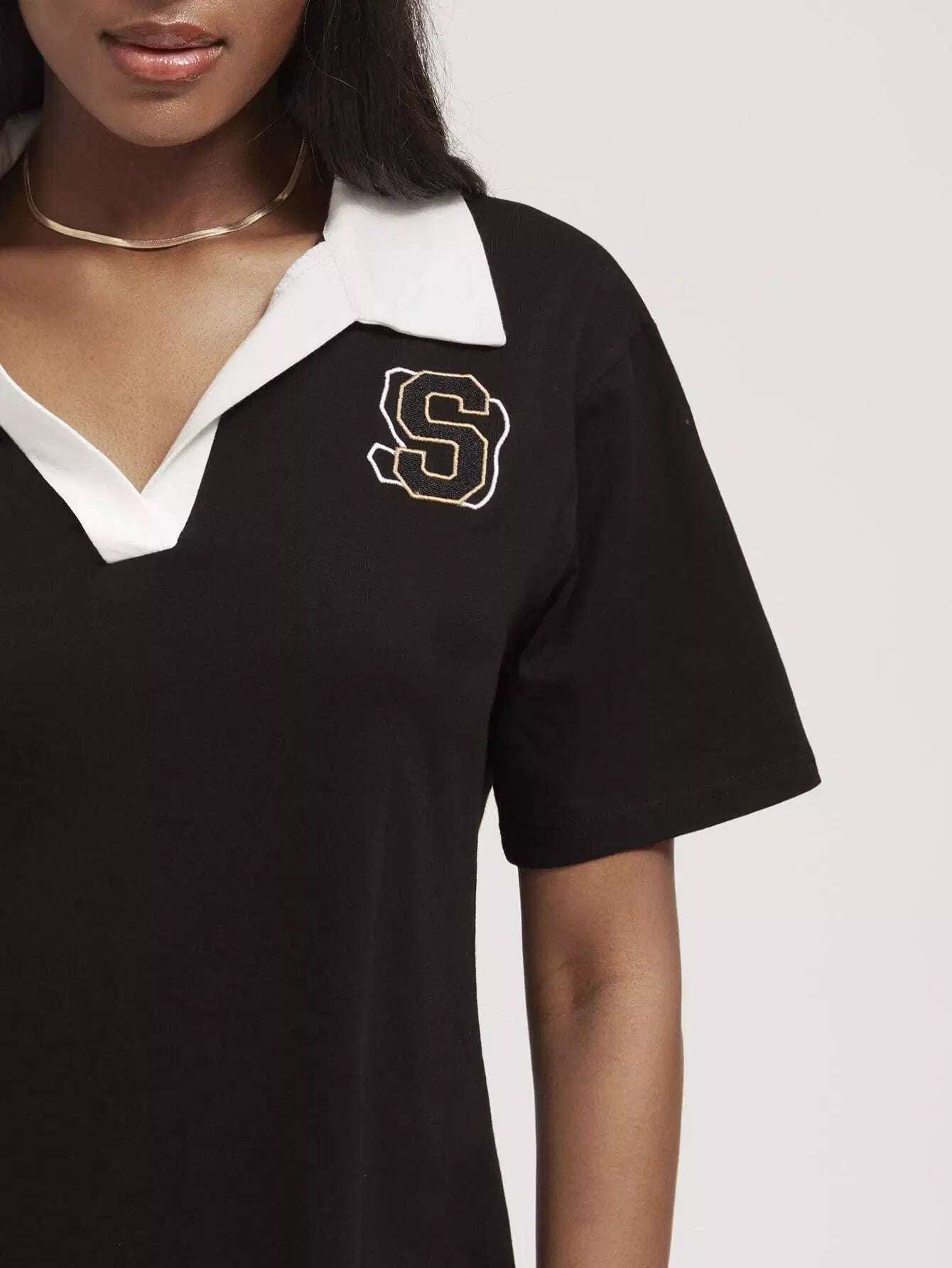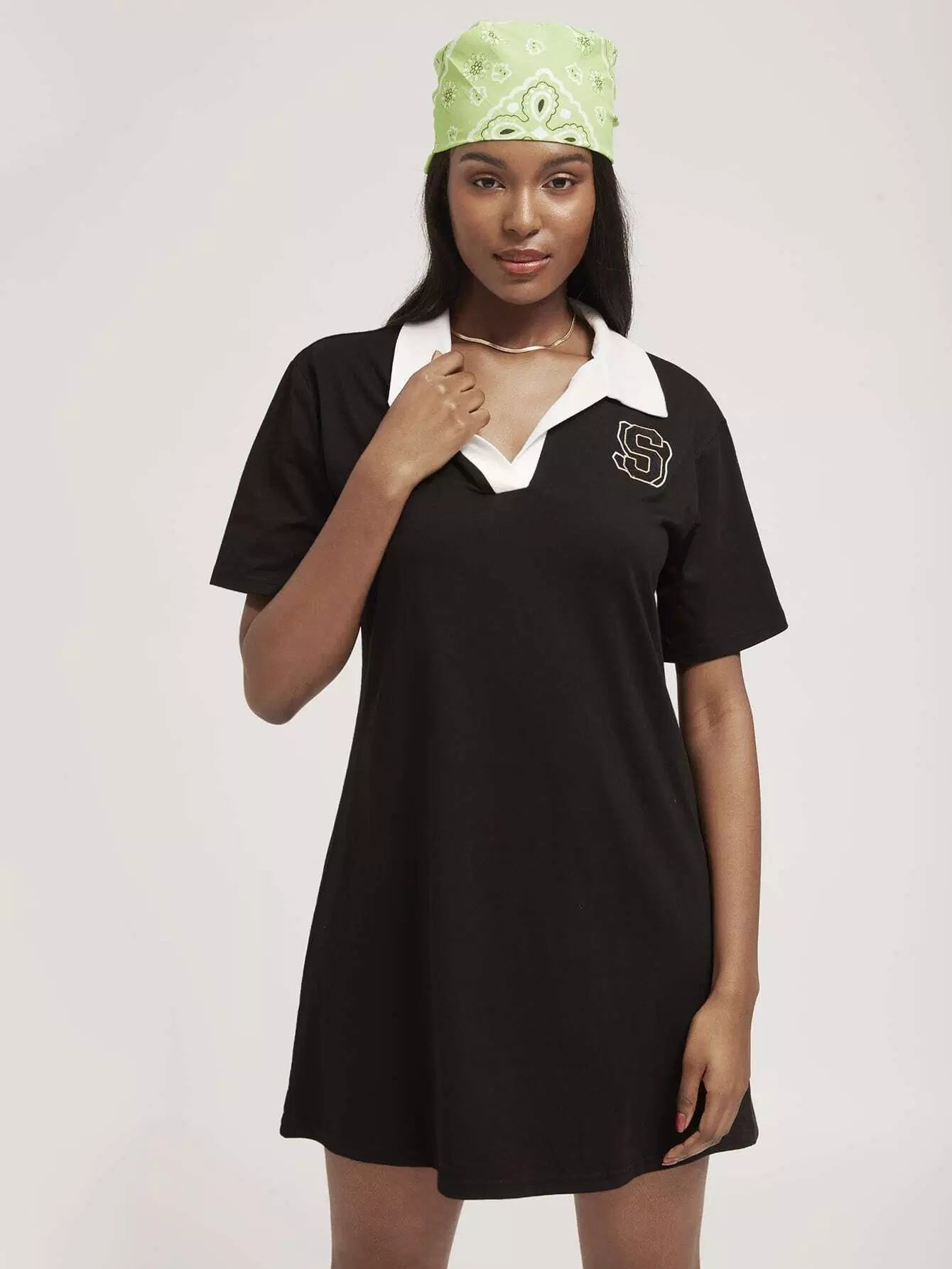 فستان برقبة قميص بولو مطرز بحروف على شكل حرف