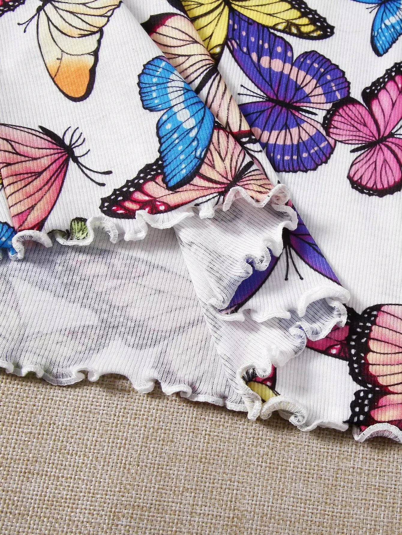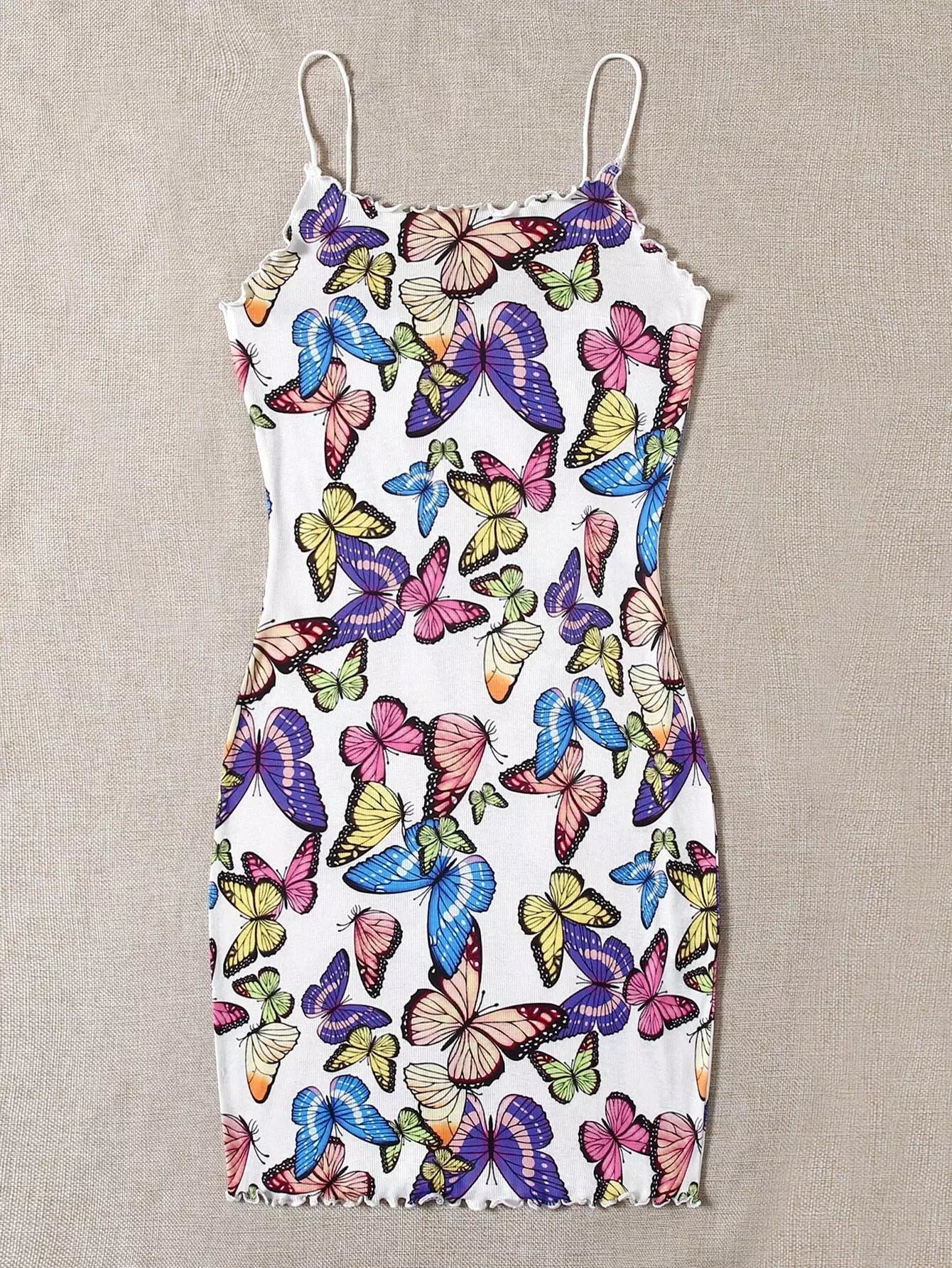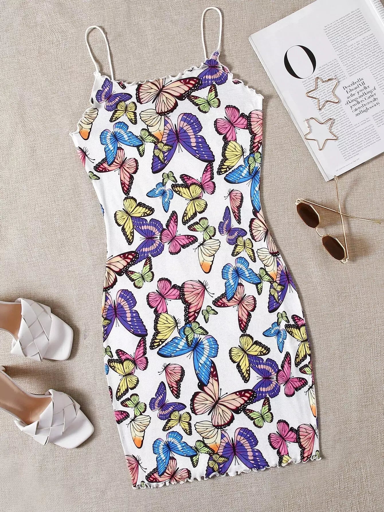 فستان كامي مزين بطبعة فراشات بنقشة الخس