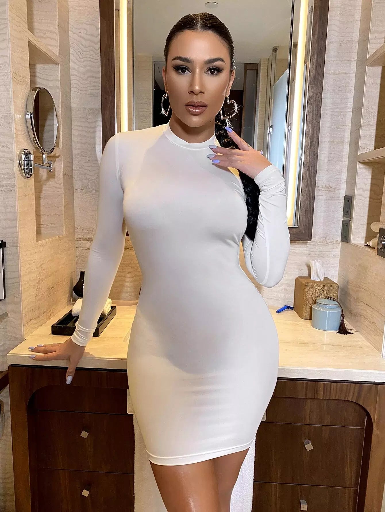 للنساء - فستان ضيق بياقة وهمية وظهر مكشوف وسلسلة