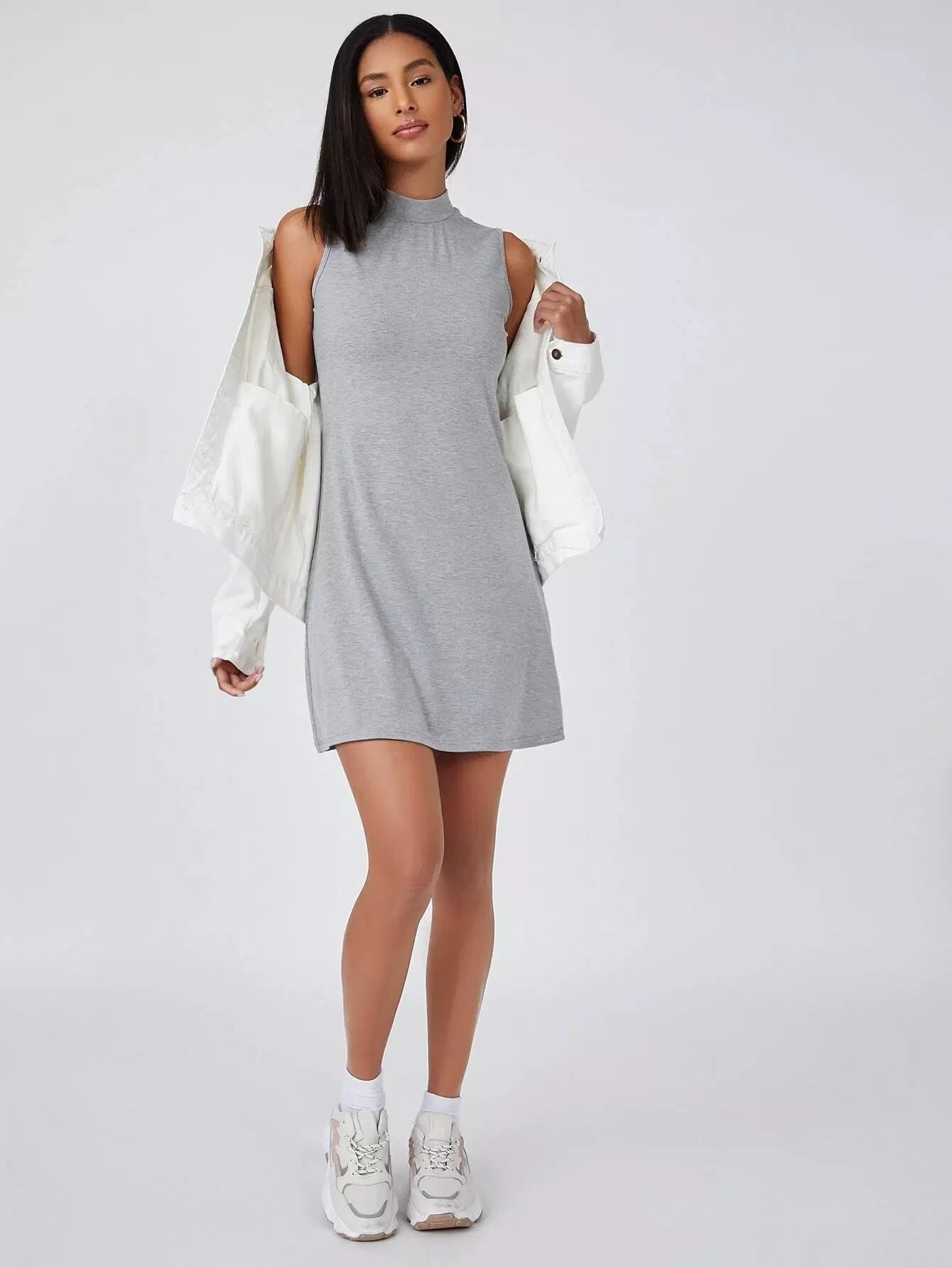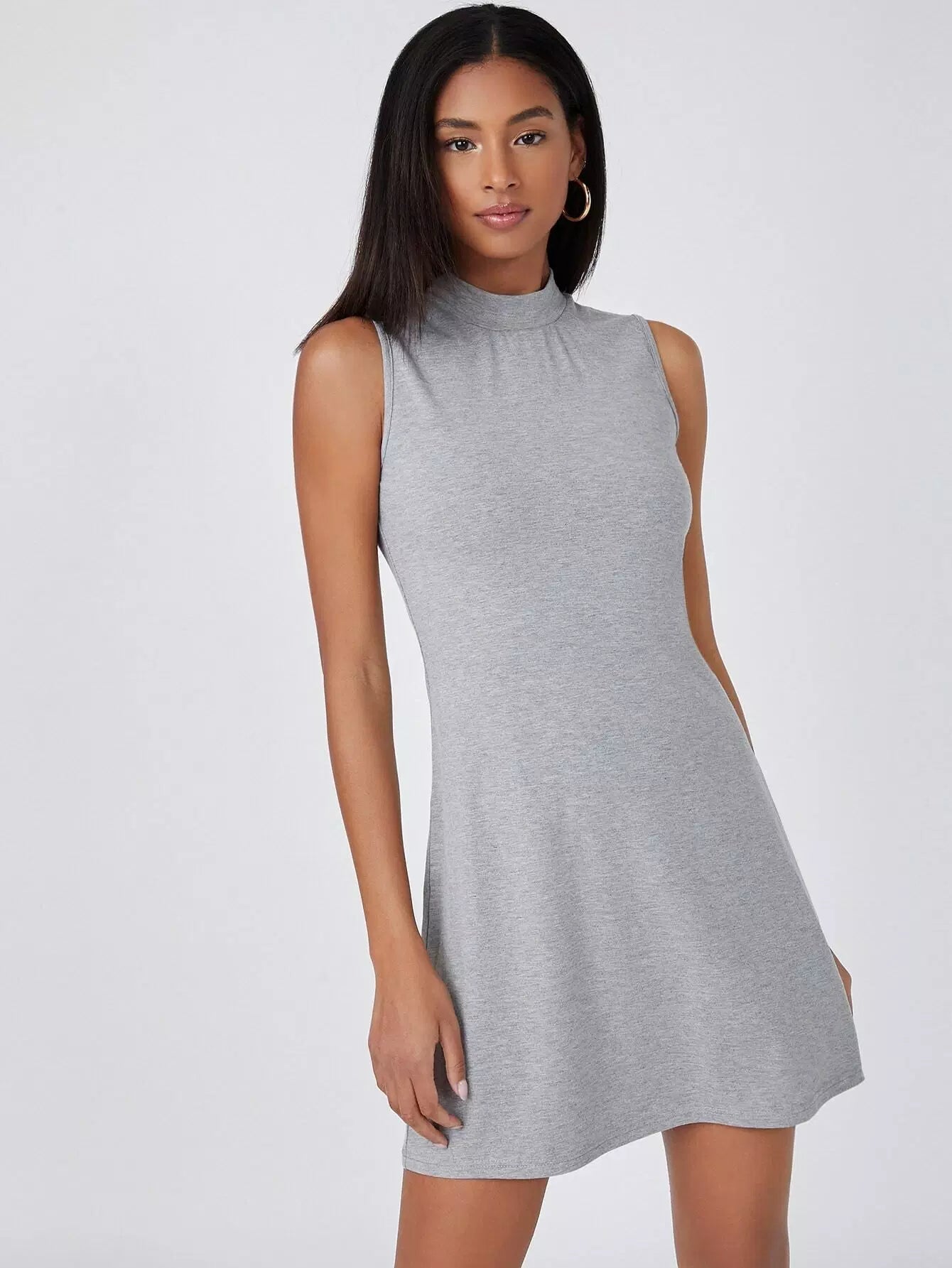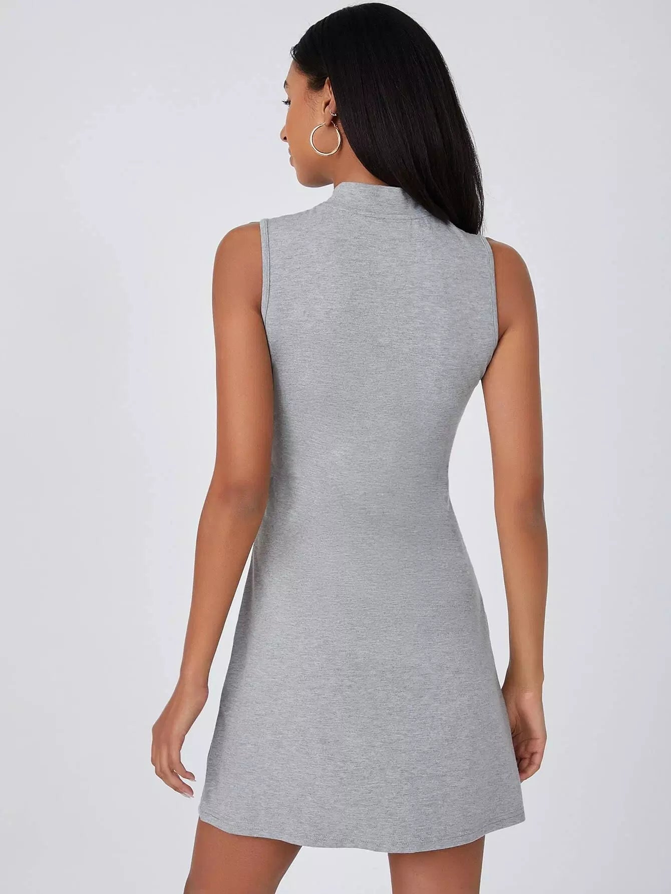 فستان محبوك برقبة وهمية برقبة متماسكة