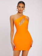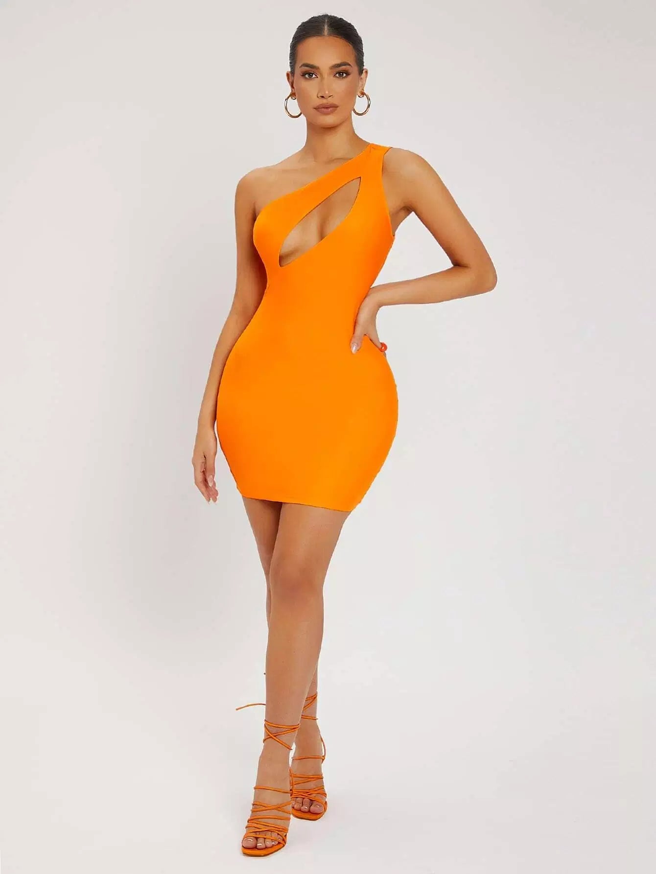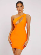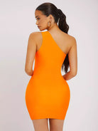 فستان برتقالي نيون بكتف واحد بقصّة بودي-أوتد برتقالي