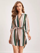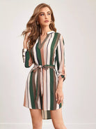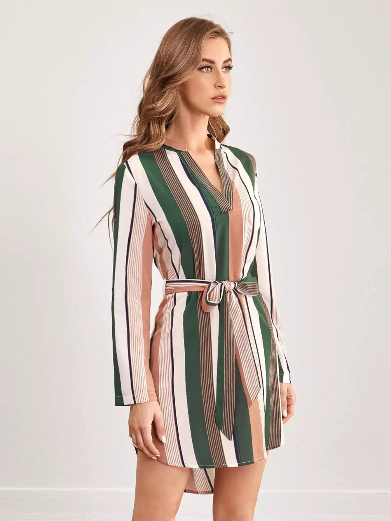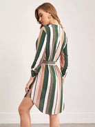 للنساء - فستان بحاشية متدلية ورقبة مدببة وأكمام ملفوفة