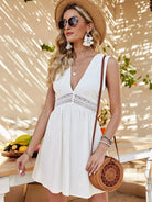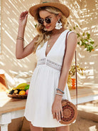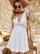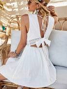 النساء - فستان بخصر من الدانتيل وربطة عنق عميقة