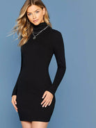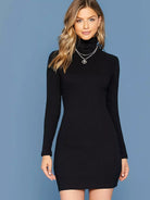 للنساء - فستان قصير بأكمام طويلة وياقة مدورة مضلعة