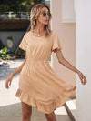 فستان بحواف مكشكشة سادة على شكل حرف A