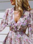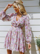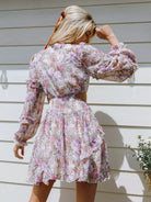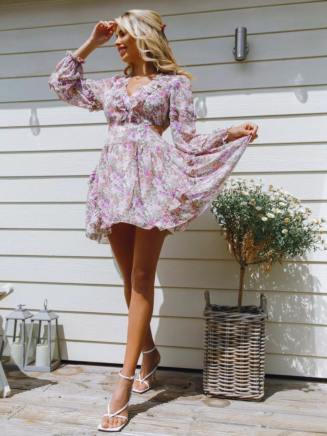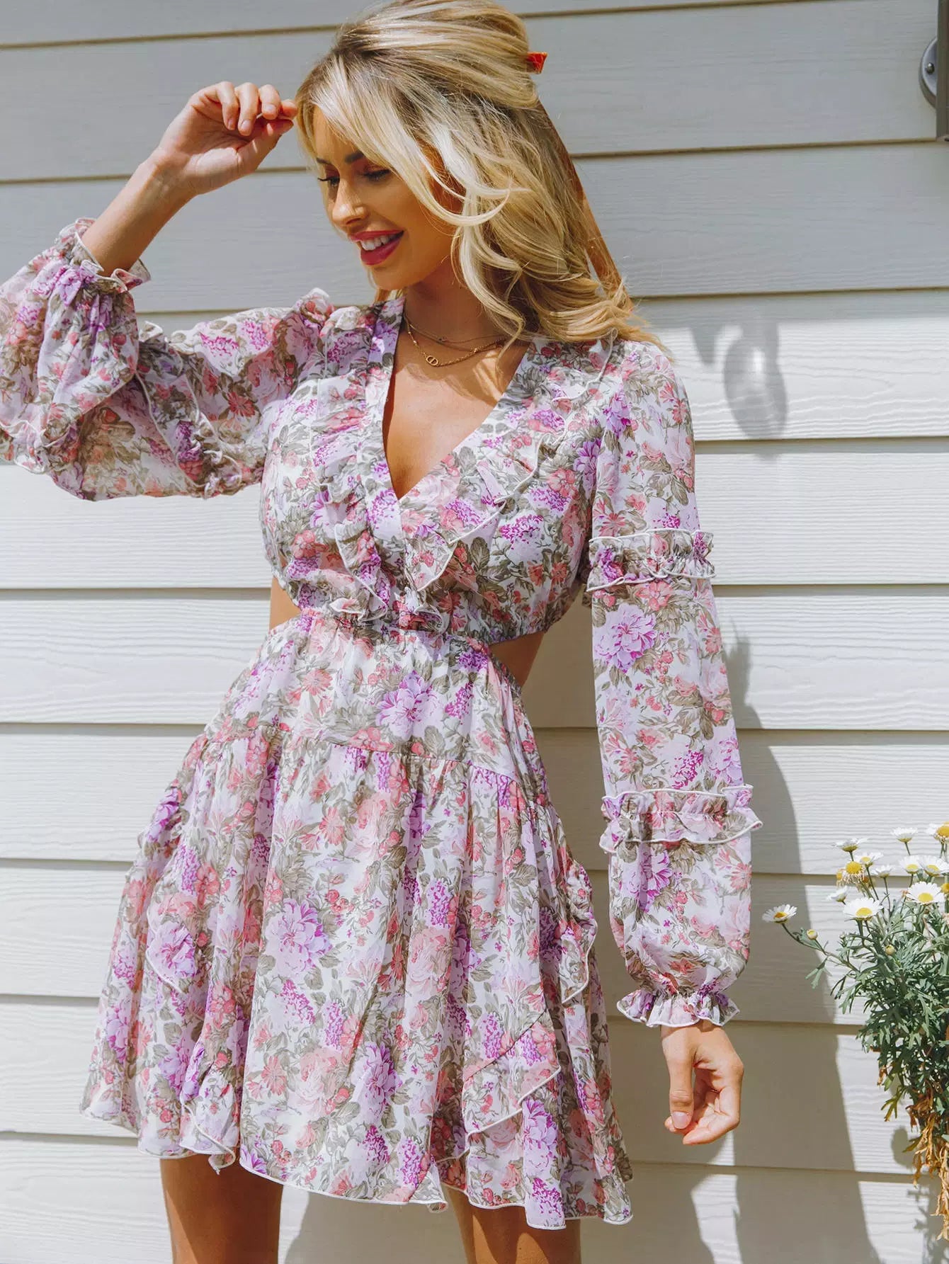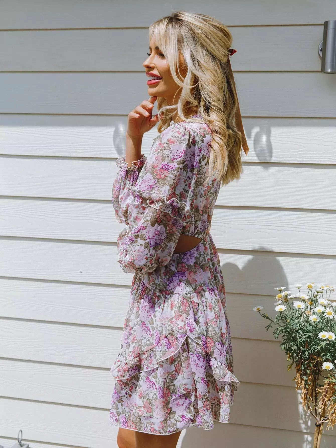 فستان شيفون كشكش بحواف مكشكشة مقصوصة من الخصر ومزخرف بالزهور