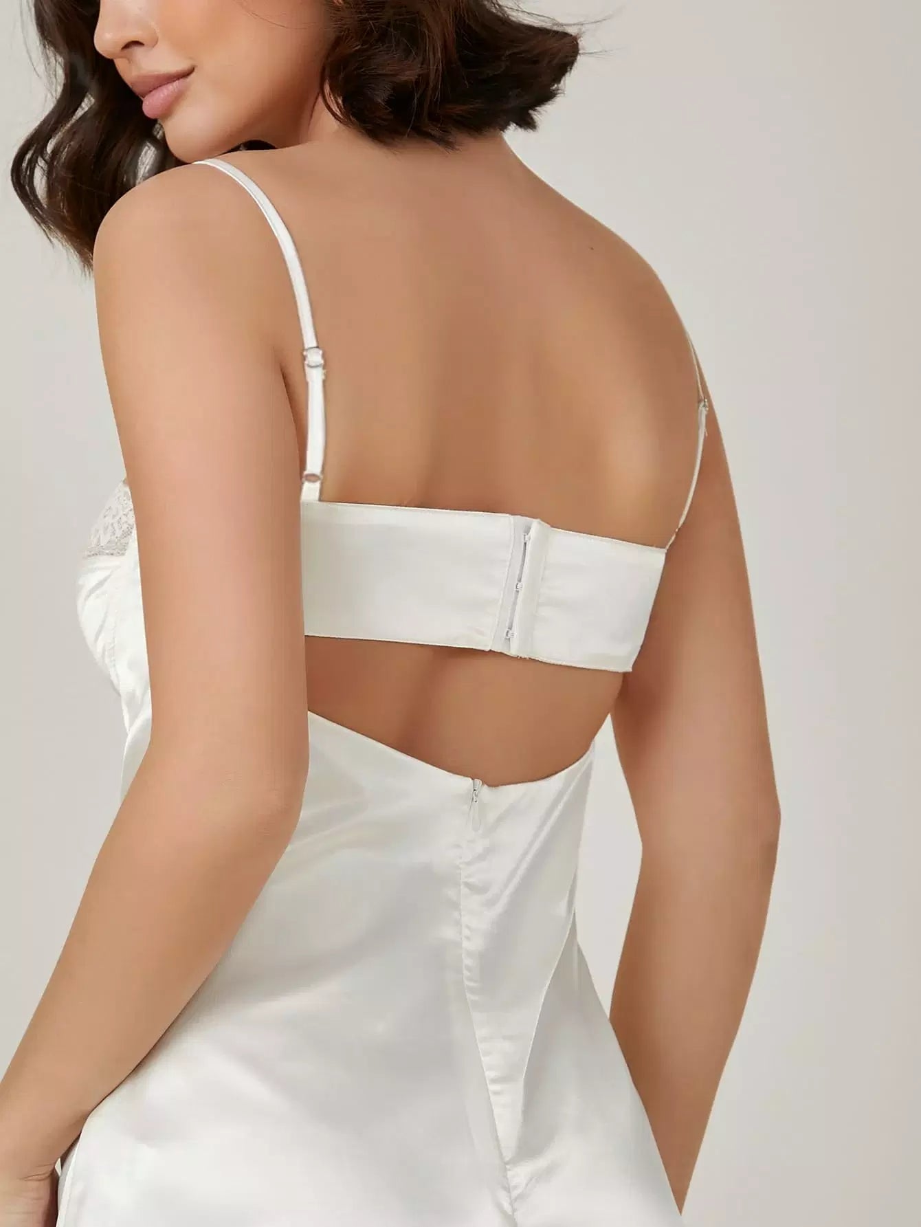 فستان من الساتان المزين بالدانتيل والساتان والحرير