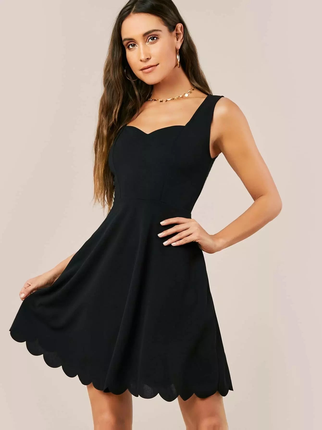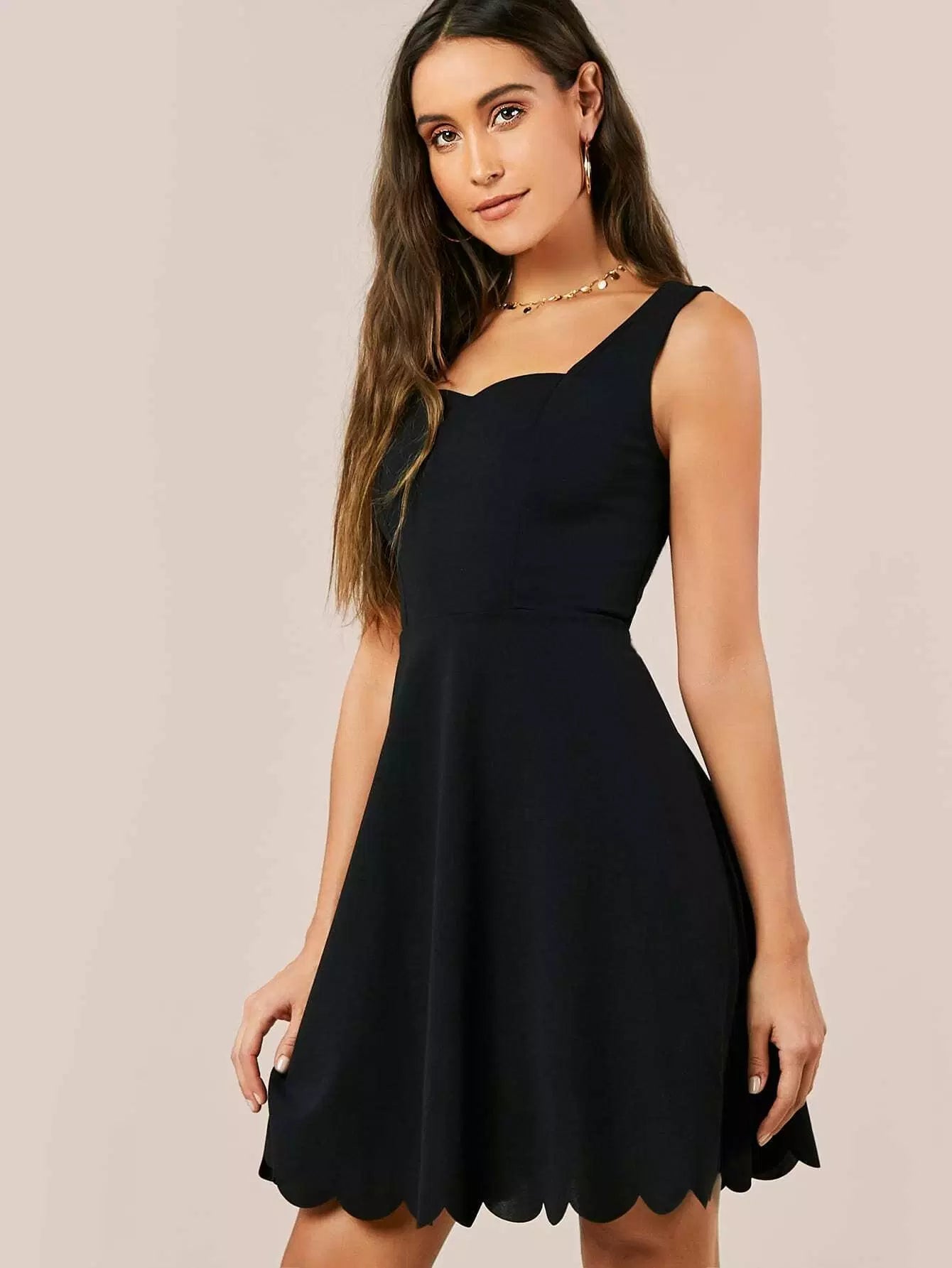 فستان بقصّة من الإسكالوب بقصّة من الإسكالوب وفلير