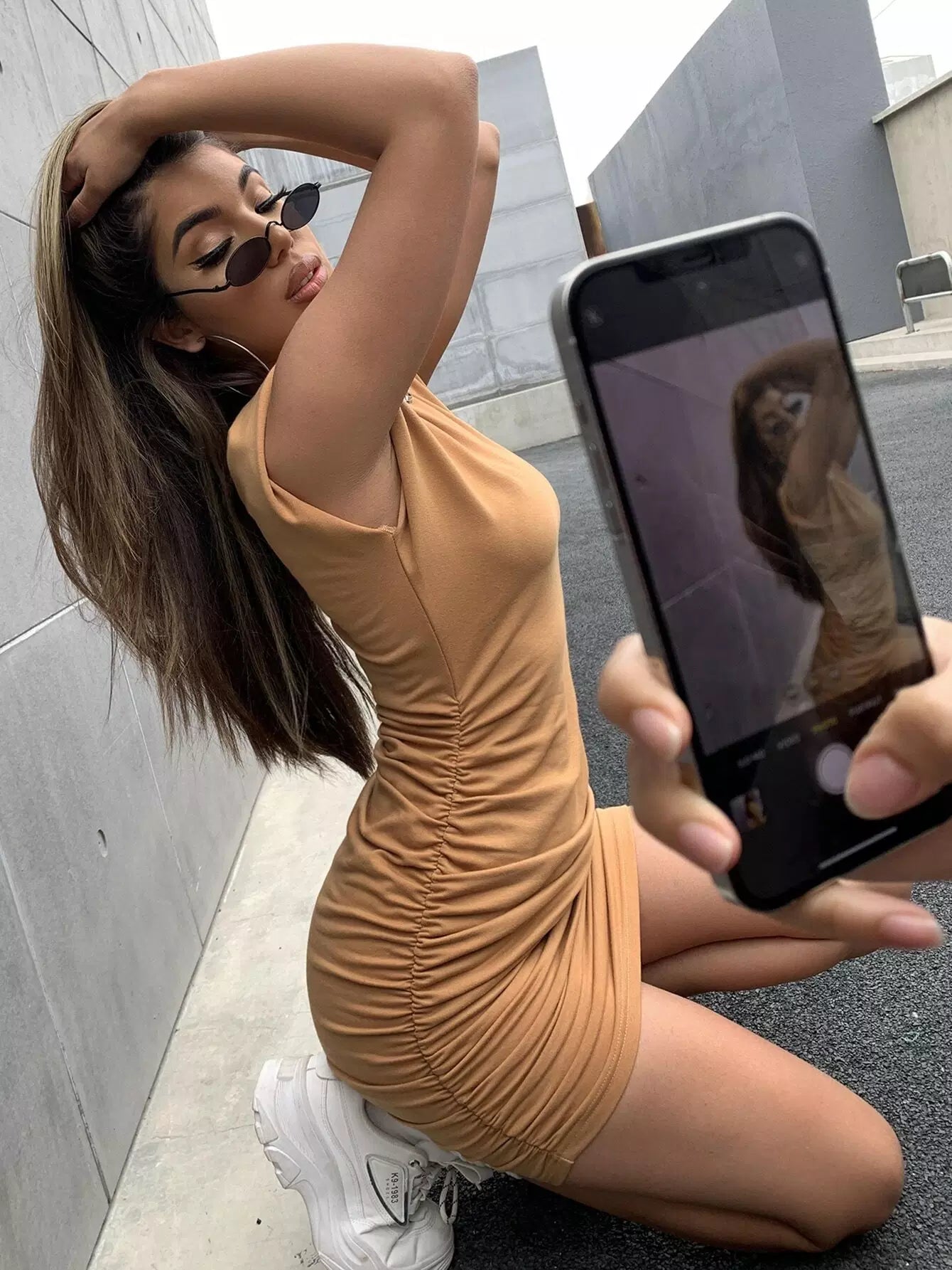 فستان بوديكون مكشكش على الأكتاف مكشكش