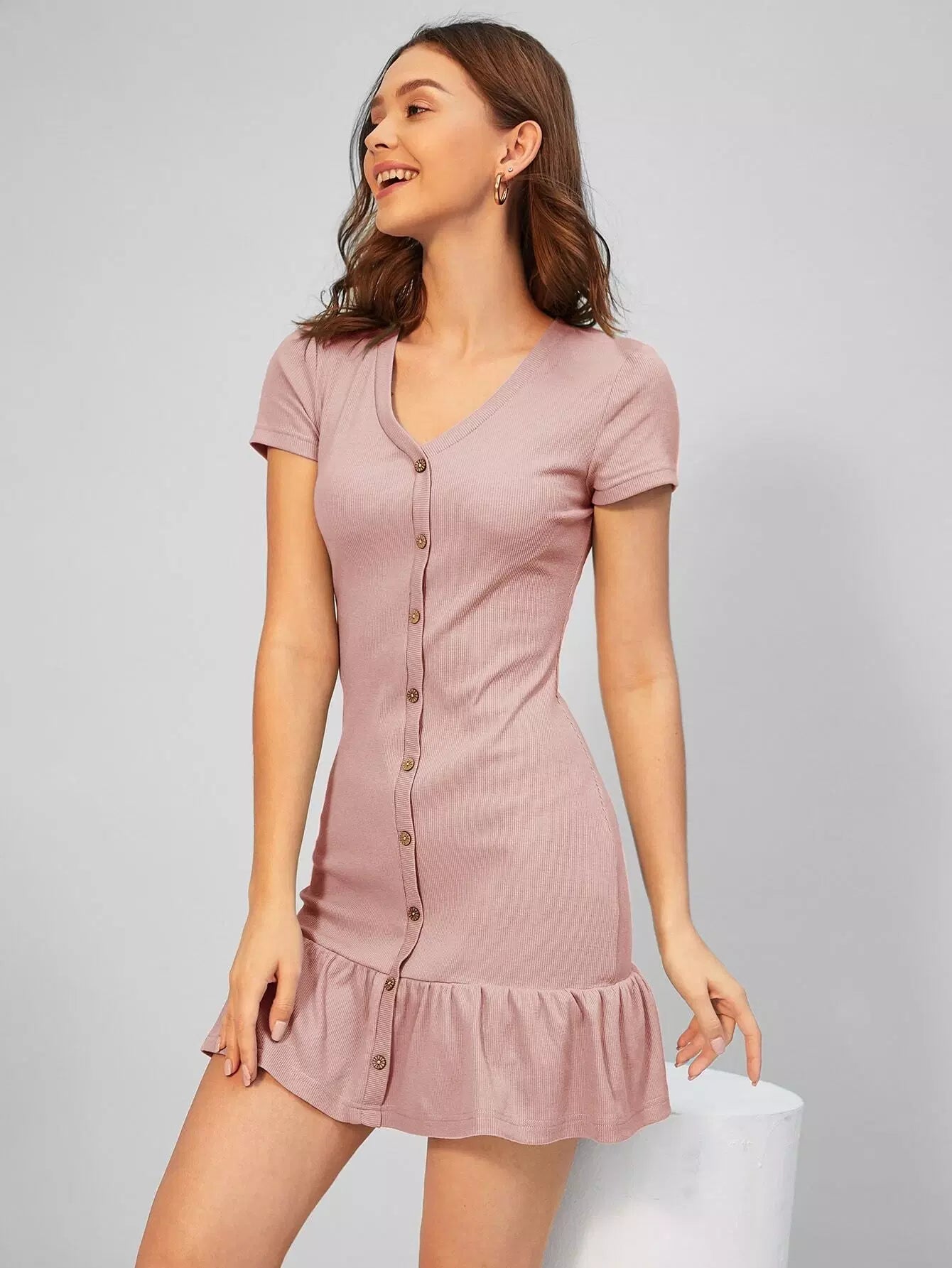 فستان بحافة مكشكشة على صدر واحد