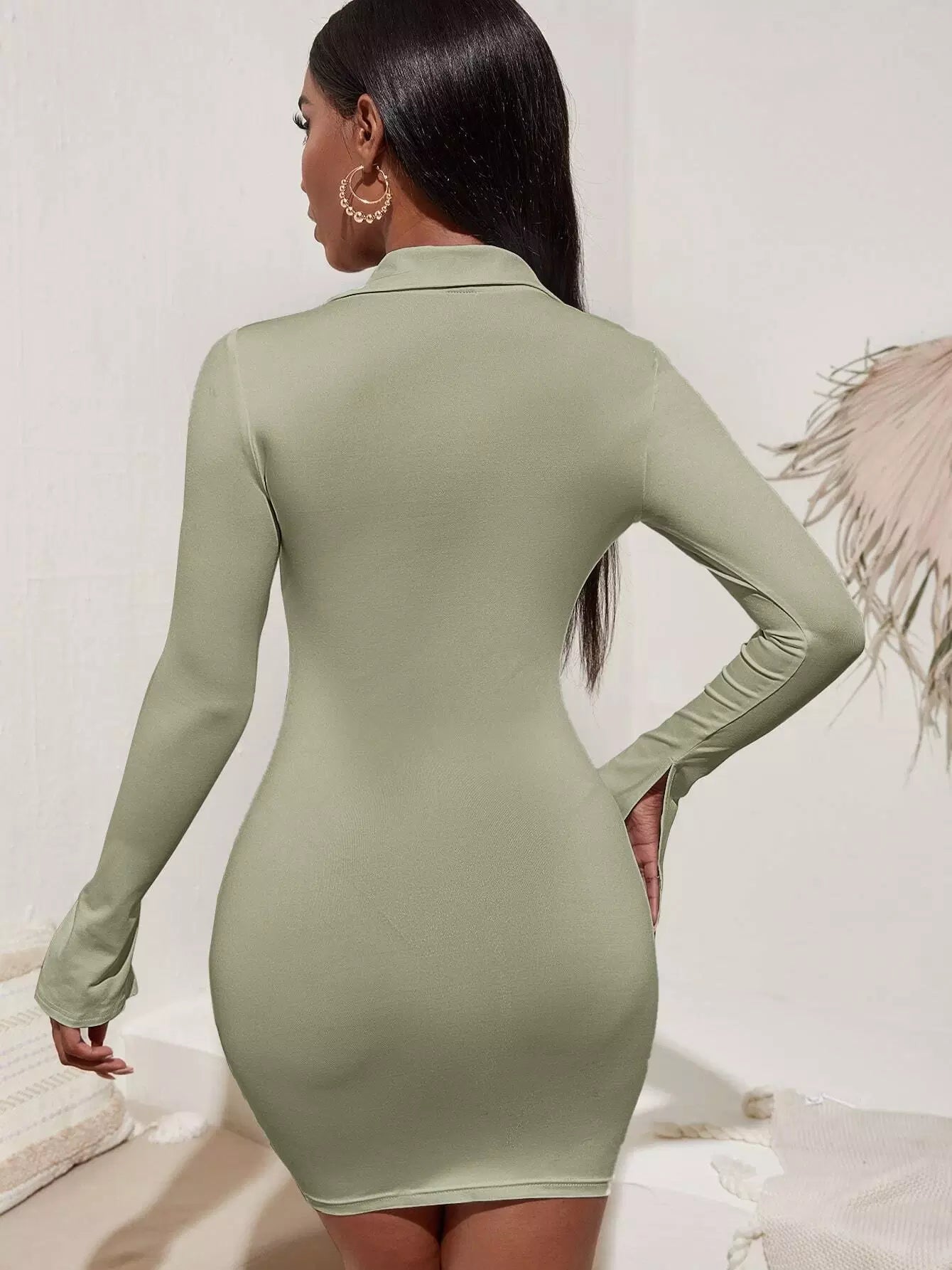 فستان سادة برقبة سادة برقبة مدبب بفتحة رقبة مشدودة