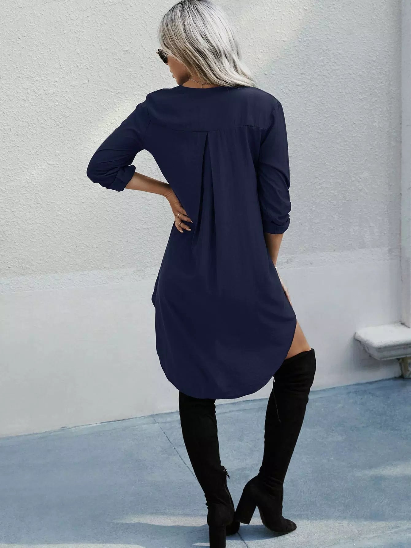 فستان سادة بأكمام ملفوفة على شكل حرف V بياقة منحنية
