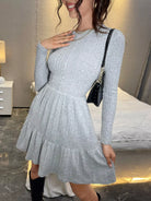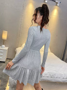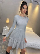 فستان بحاشية مكشكشة سادة بدون حزام