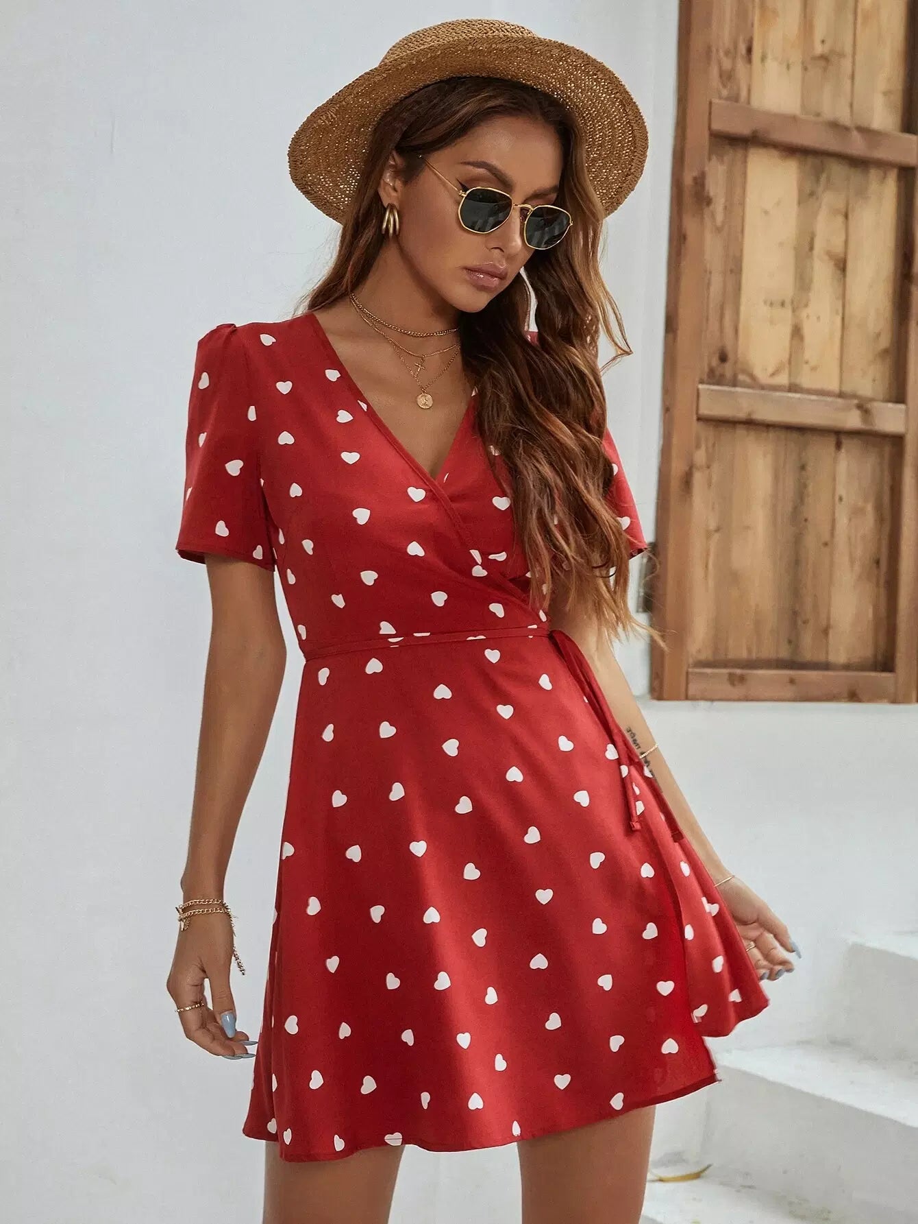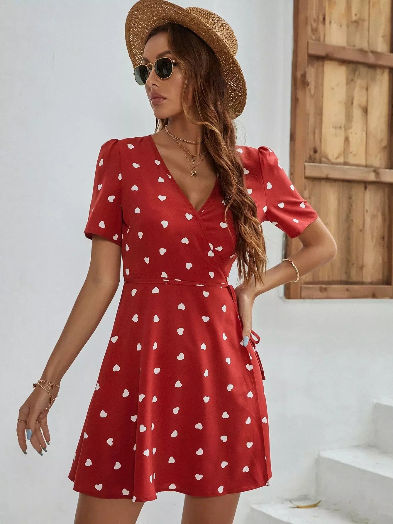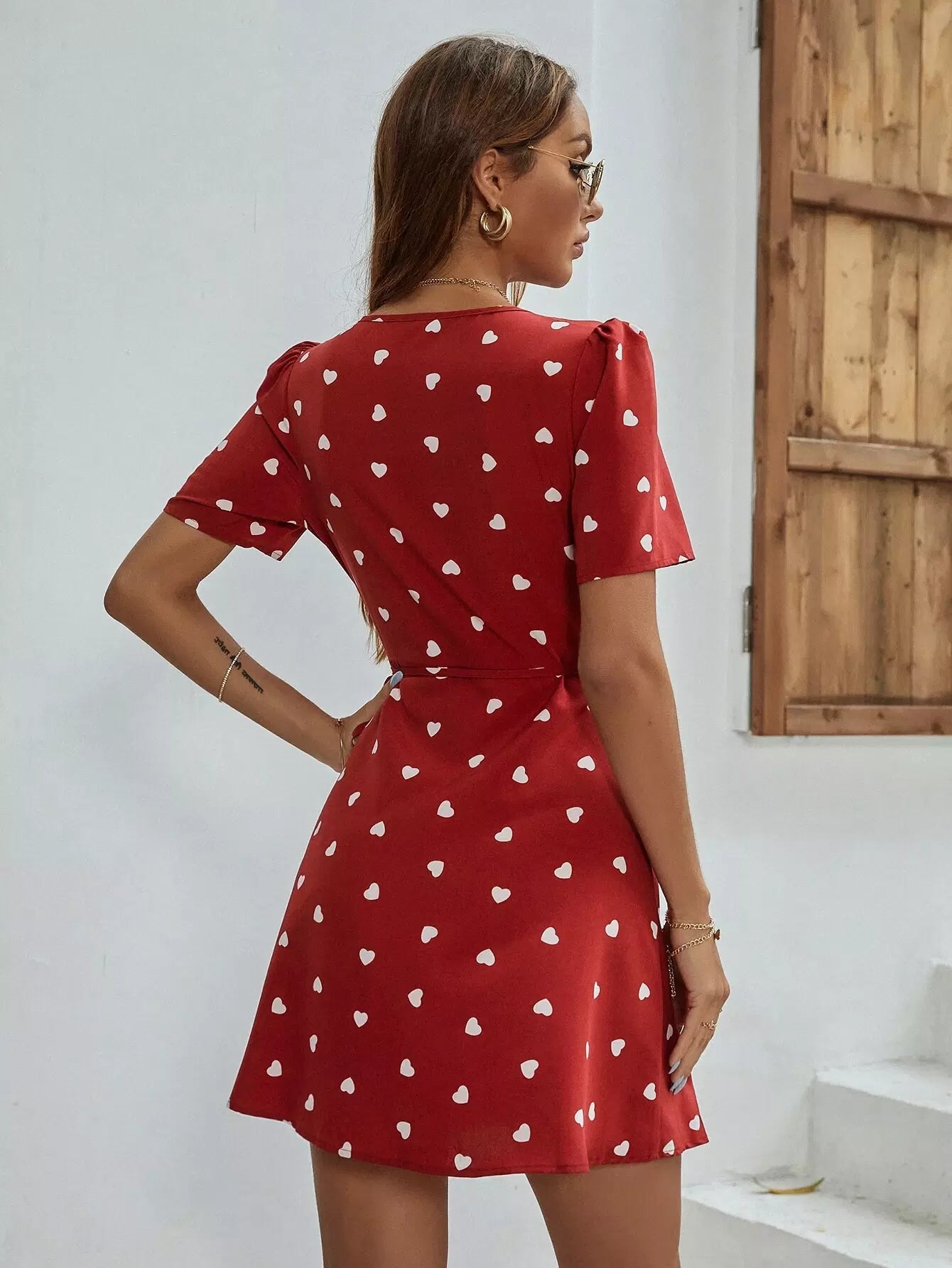 فستان بطبعة قلب مطبوع من الأمام من الكشكول