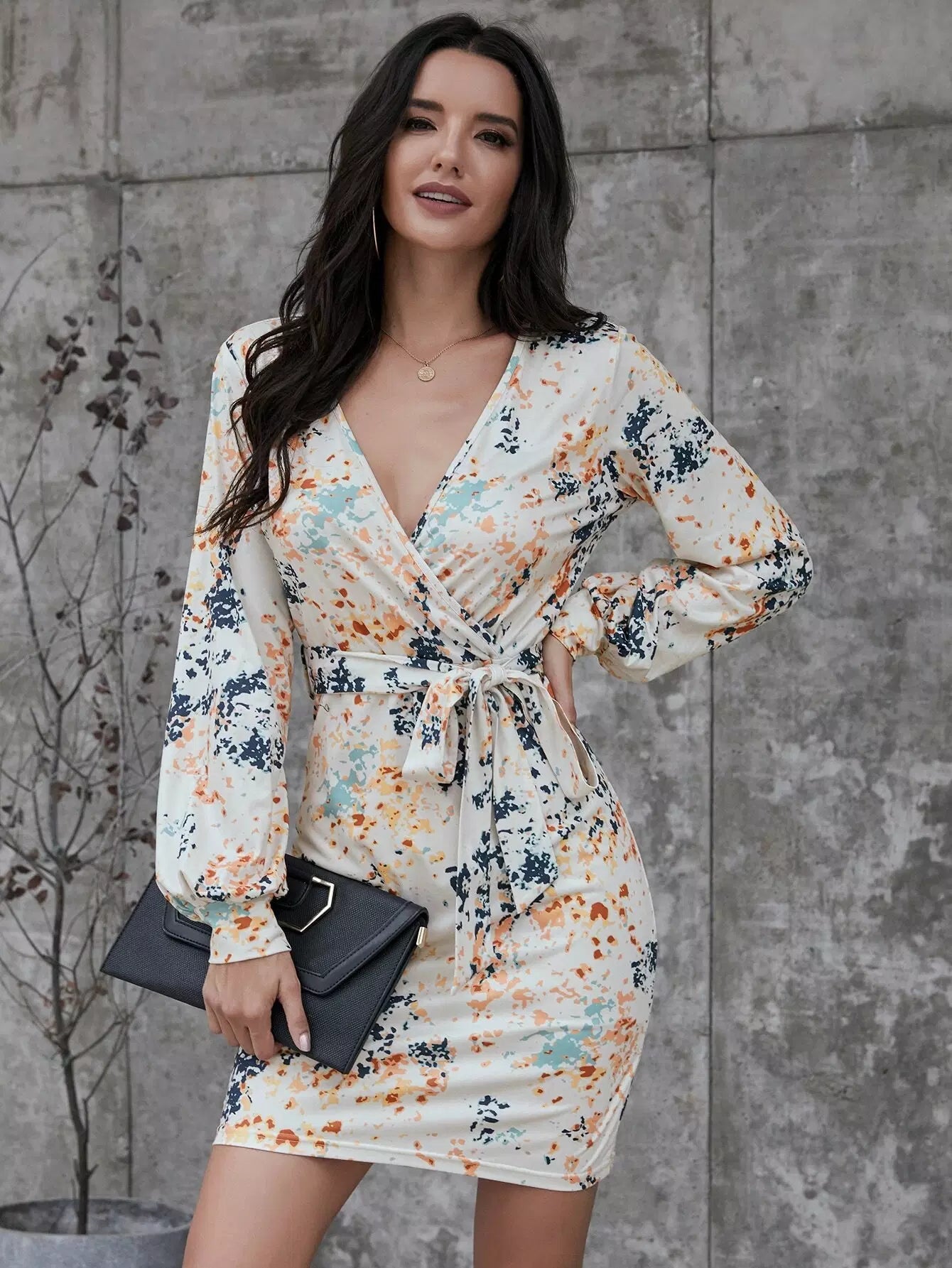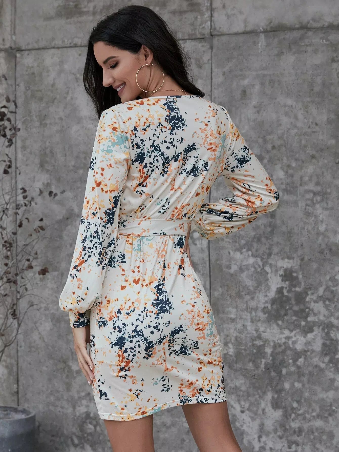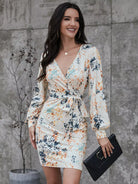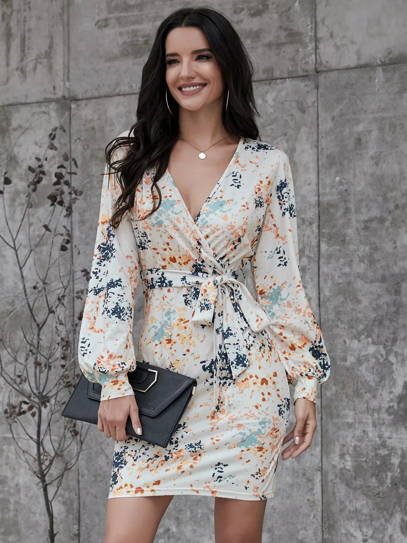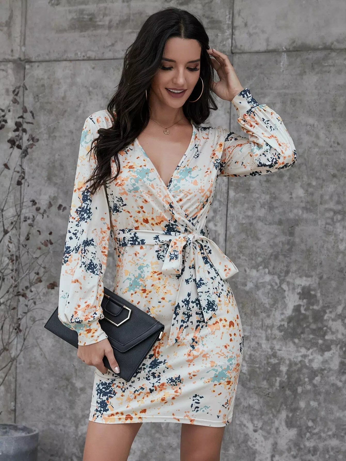 فستان Surplice بطباعة أمامية بالكامل بدون حزام