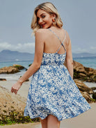 فستان كشكش برقبة كشكش بحافة كشكش مزين بالورود