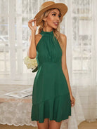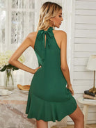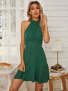 فستان مكشكشش بربطة عنق على الظهر بحافة كشكش على الرسن