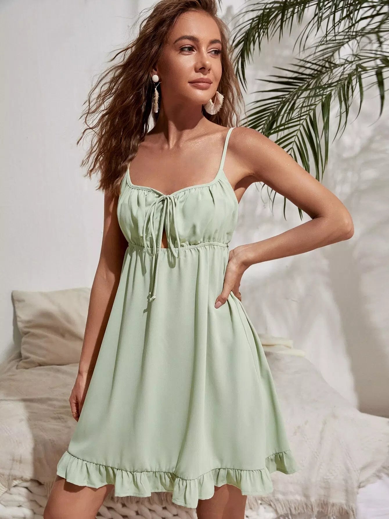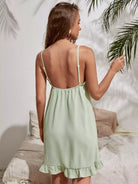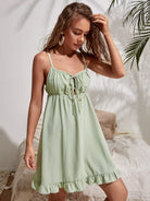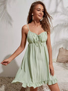 فستان كامي بربطة عنق من الأمام ومنخفض من الخلف كشكش بحافة كشكش