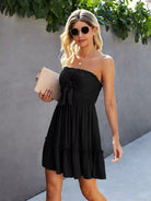 فستان أنبوبي بحافة كشكش أمامية بربطة عنق مكشكشة