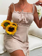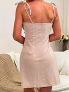 فستان مكشكش بربطة عنق على الأكتاف بحواف كشكش مكشكشة منقسمة الصدر