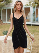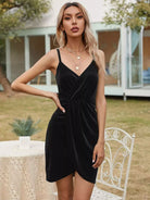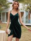 فستان كامي مخملي ملفوف بسحاب خلفي بسحاب