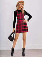 فستان تارتان جانبي بسحاب جانبي بسحاب