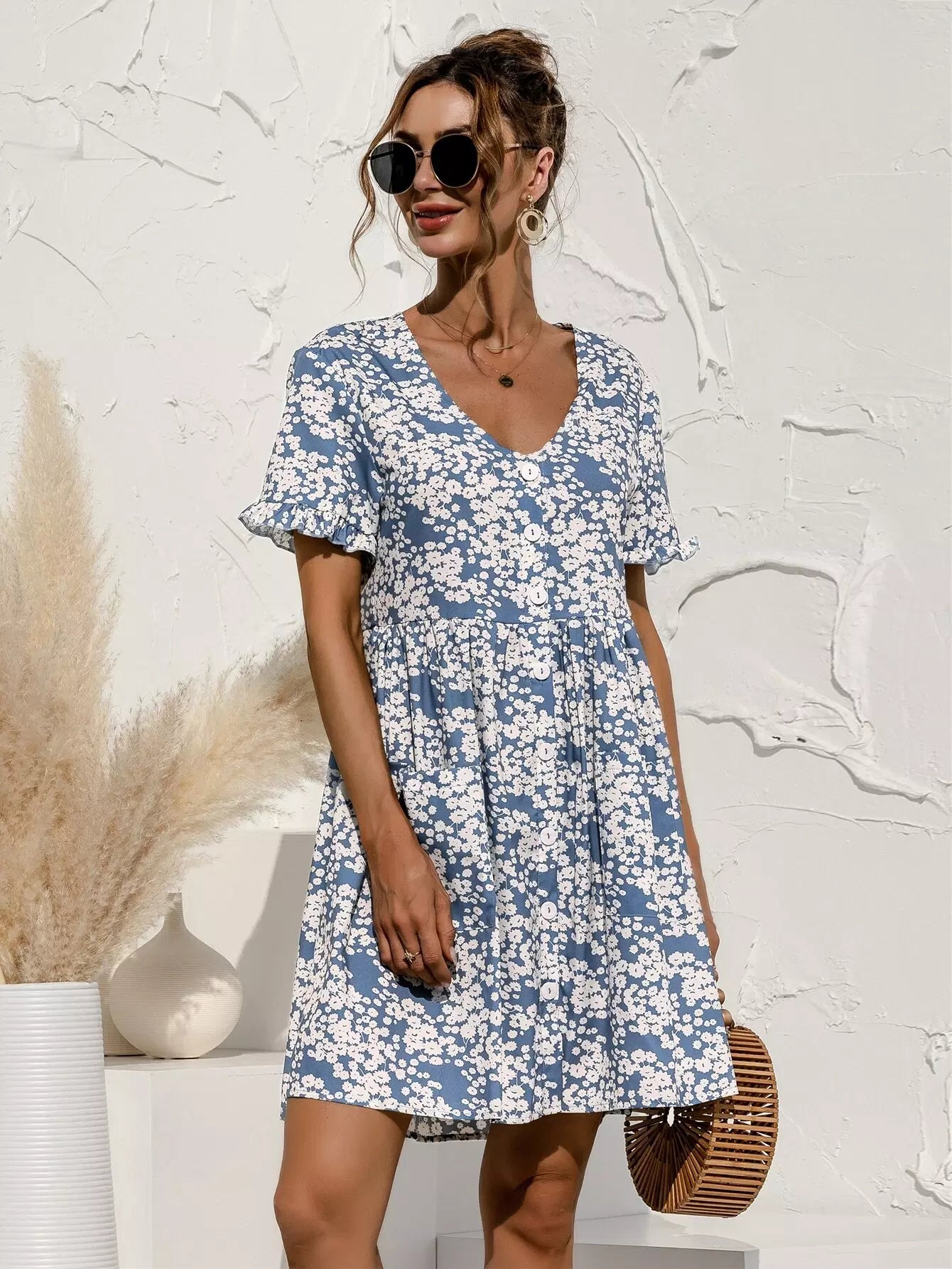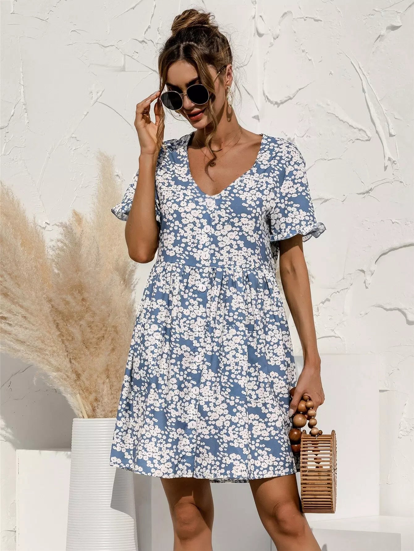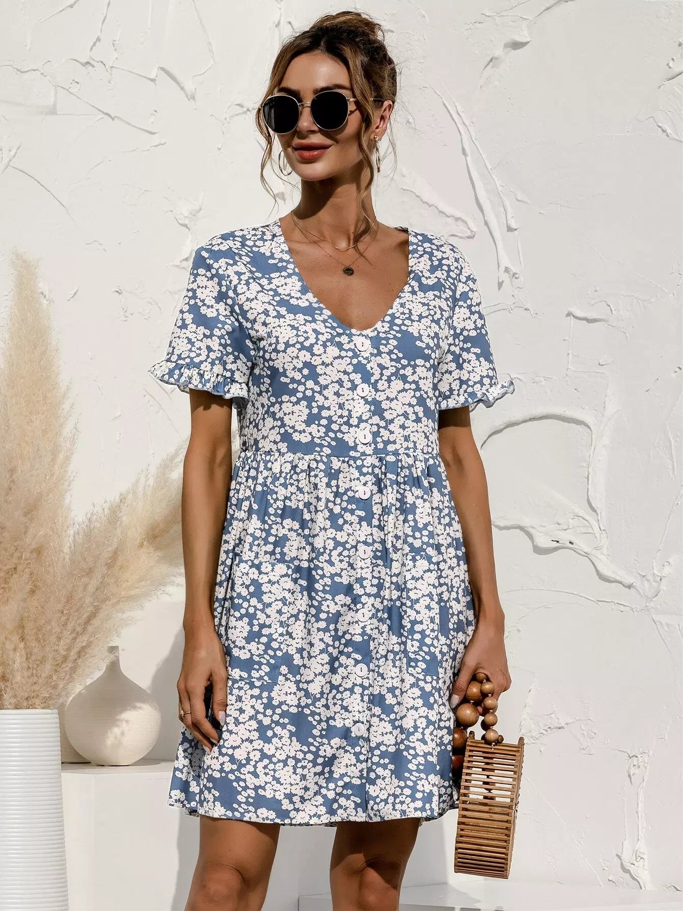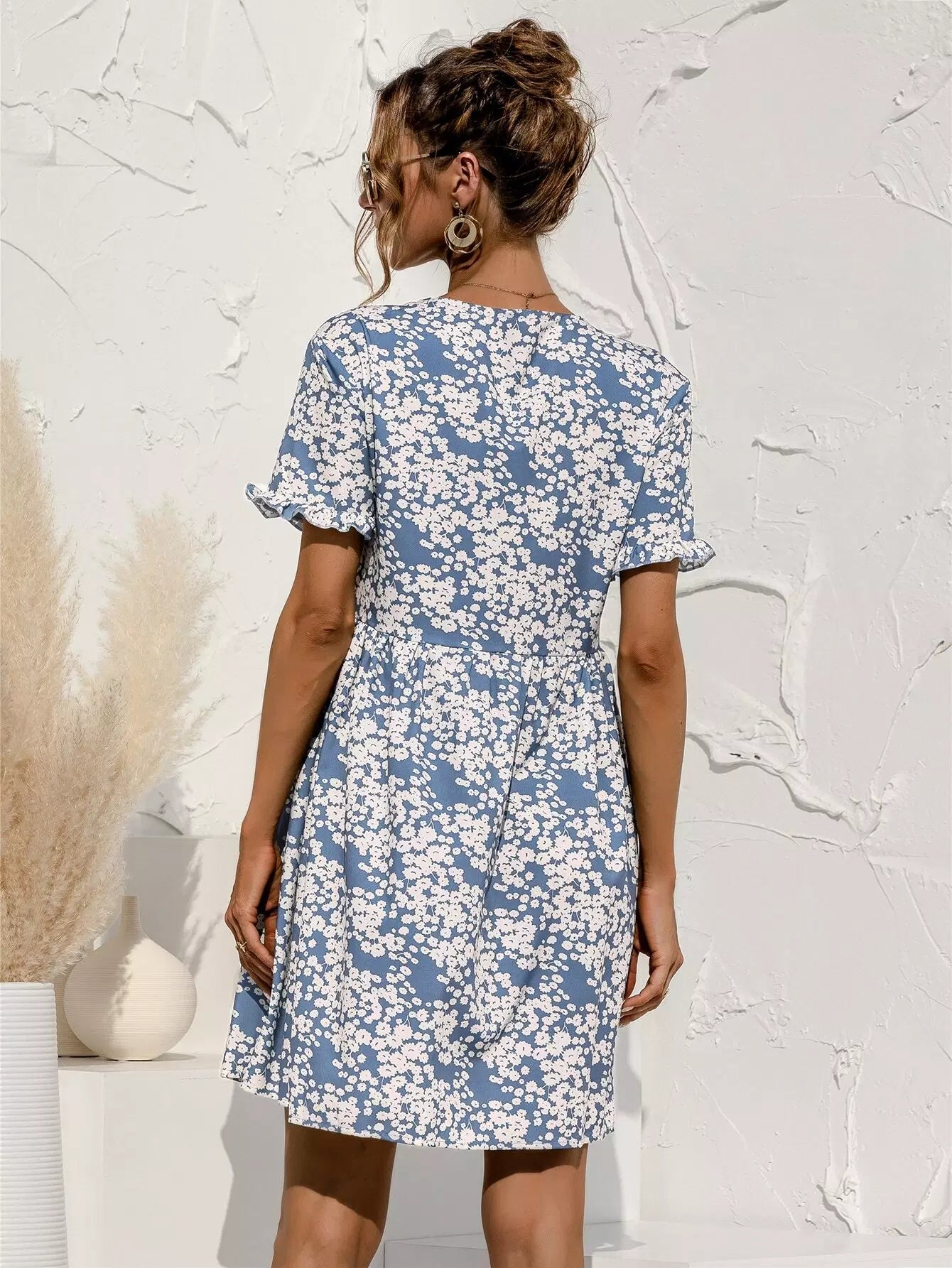 فستان مزين بطبعة زهور مطبوع على الجيب بالكامل