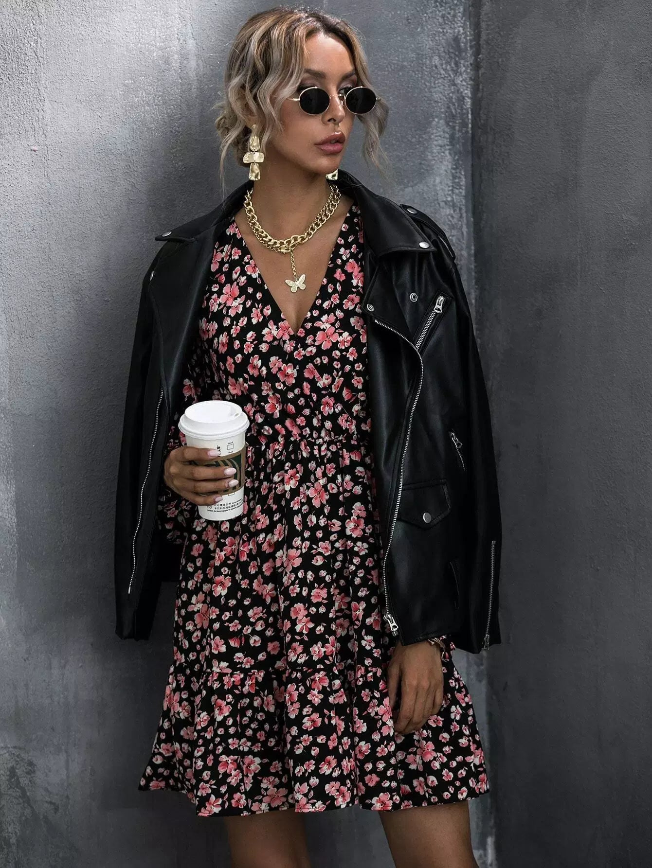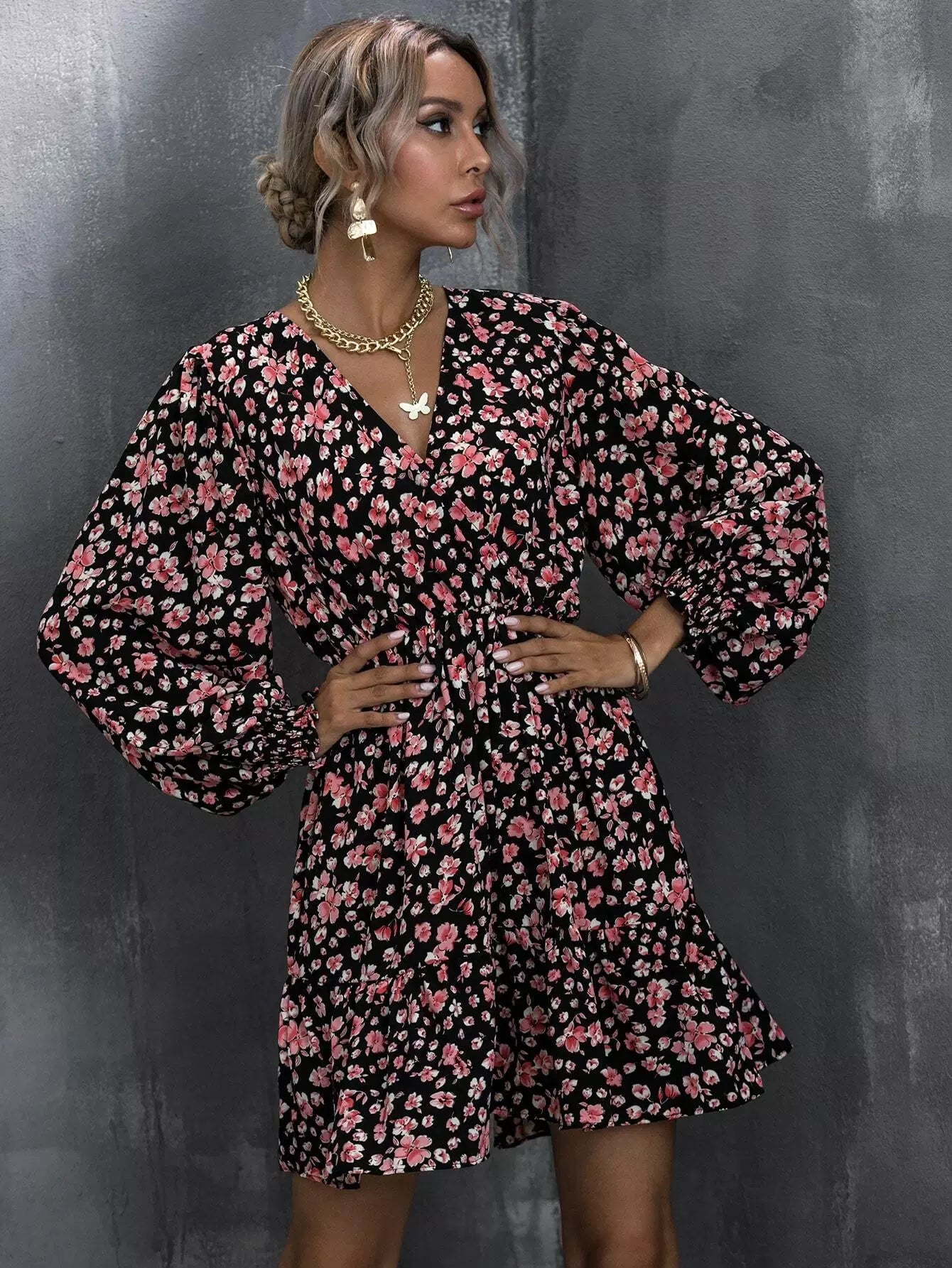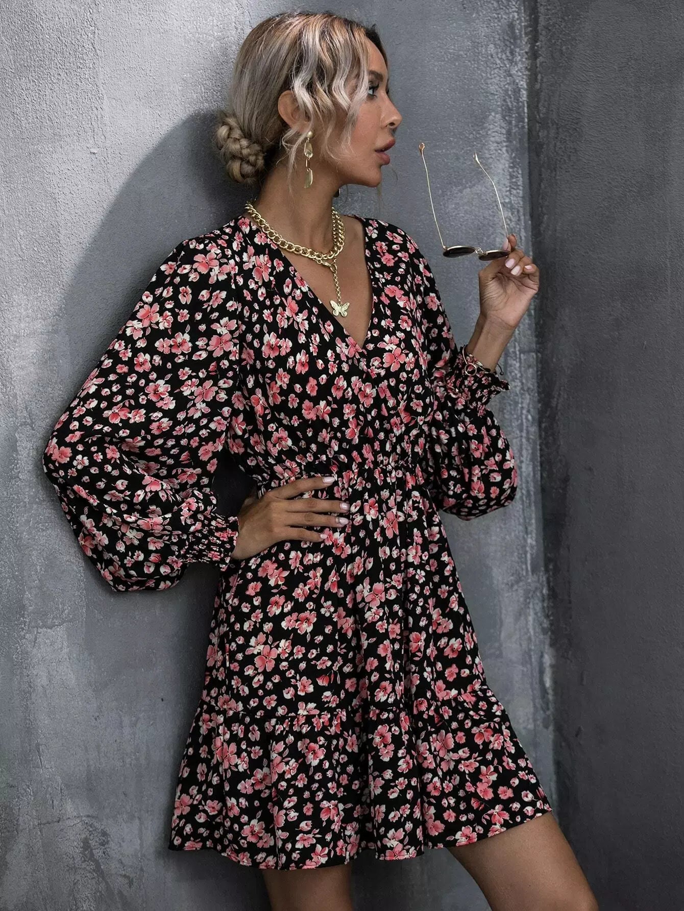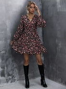 فستان ملفوف بطبعة زهور على شكل حرف A