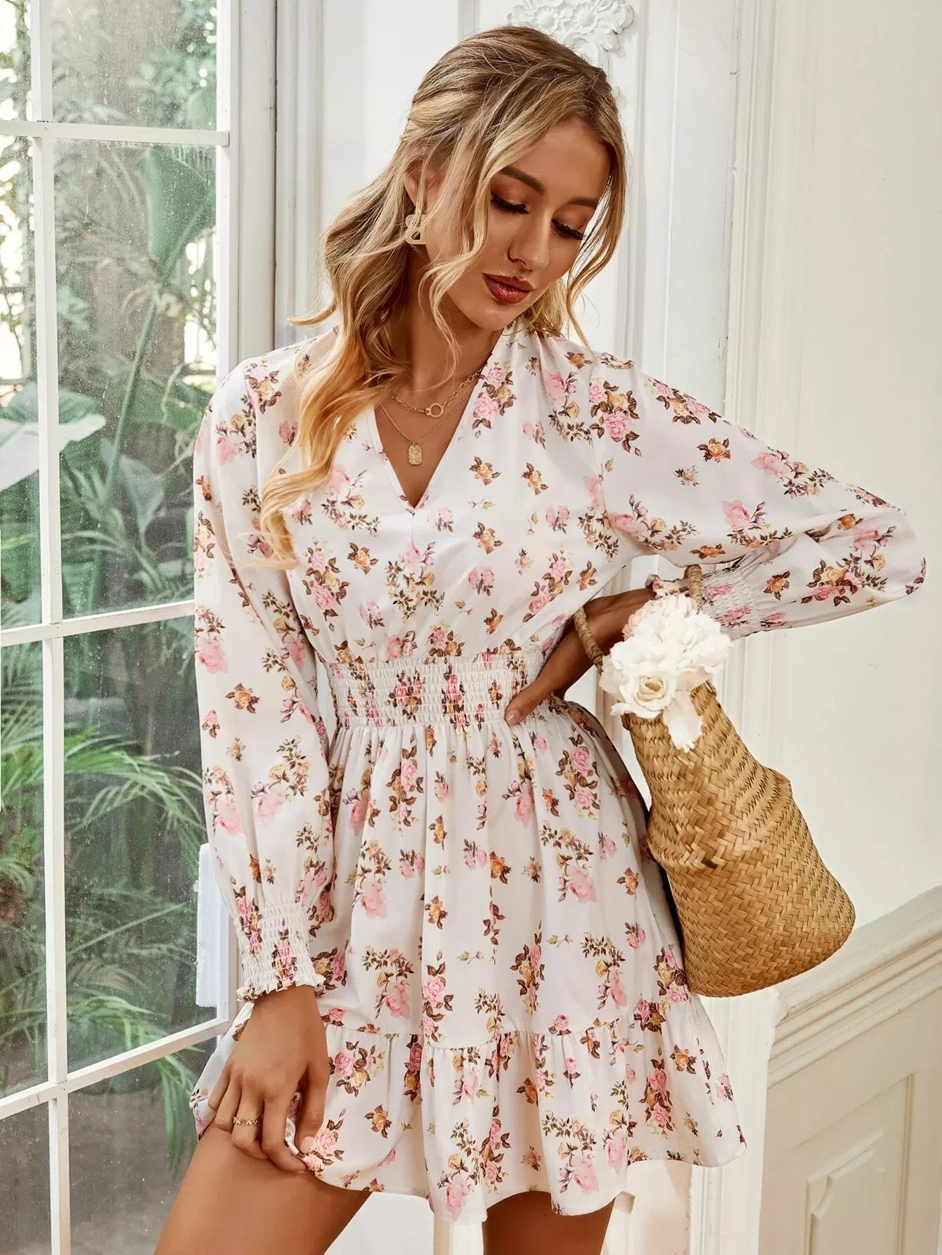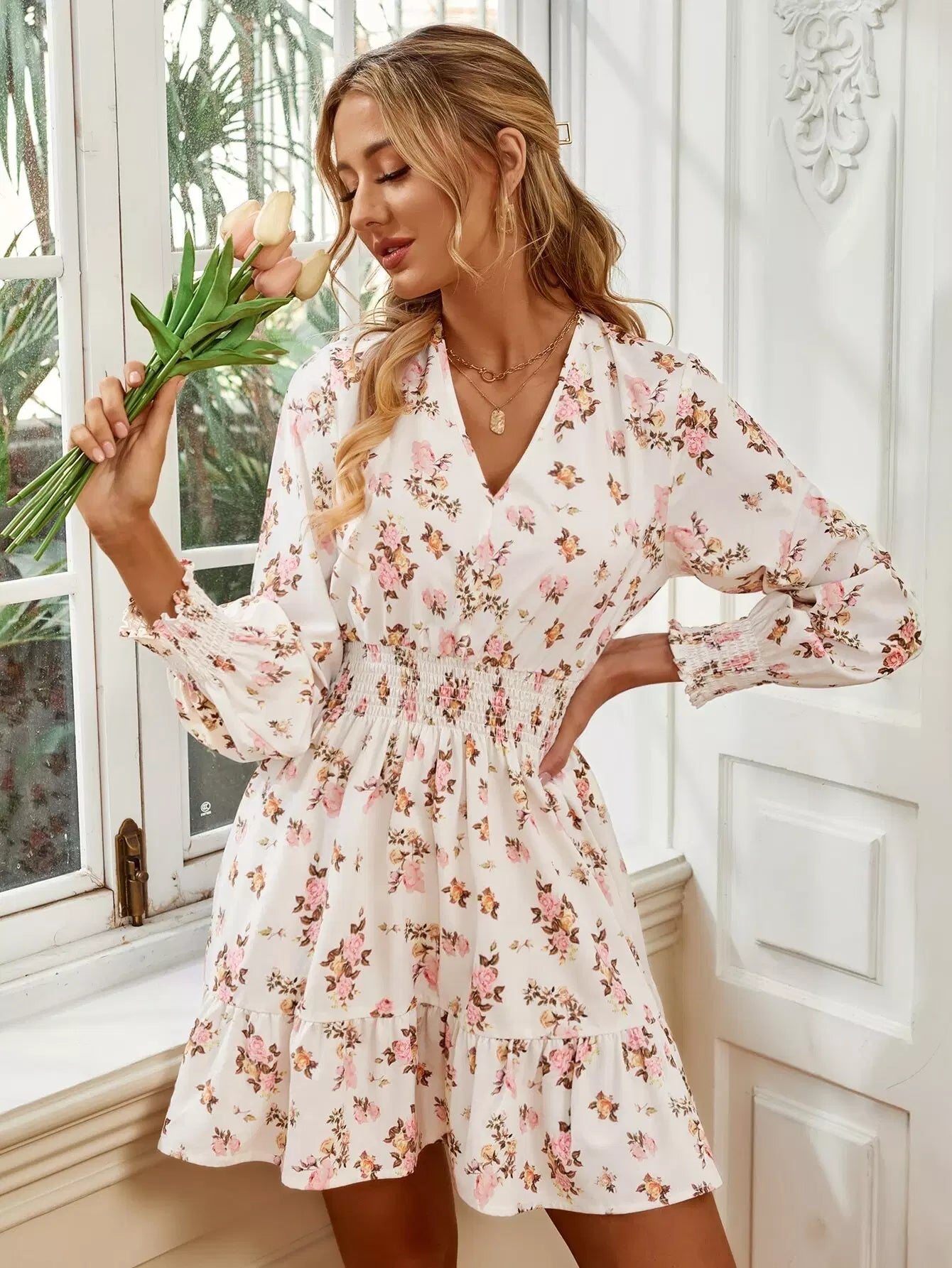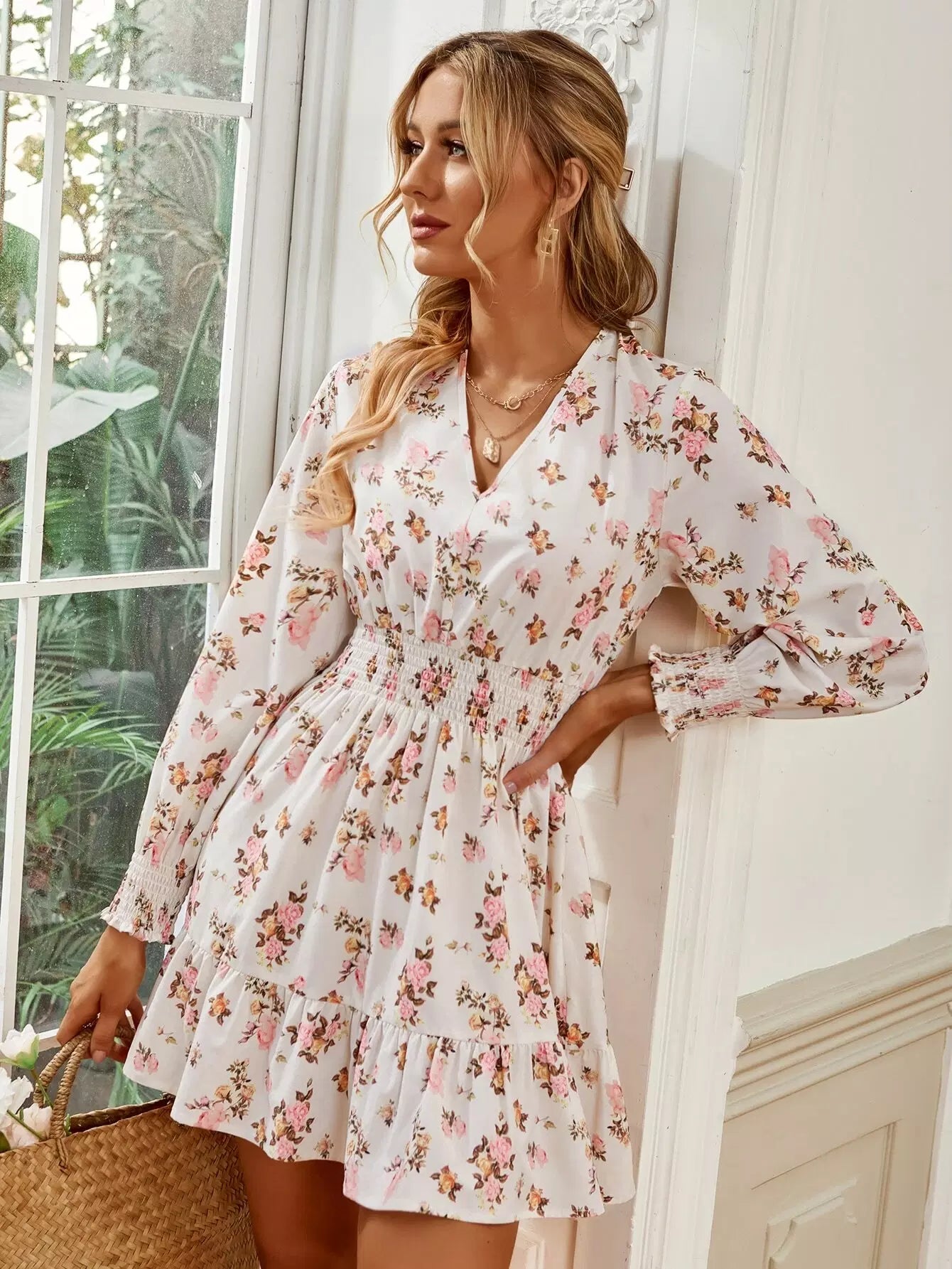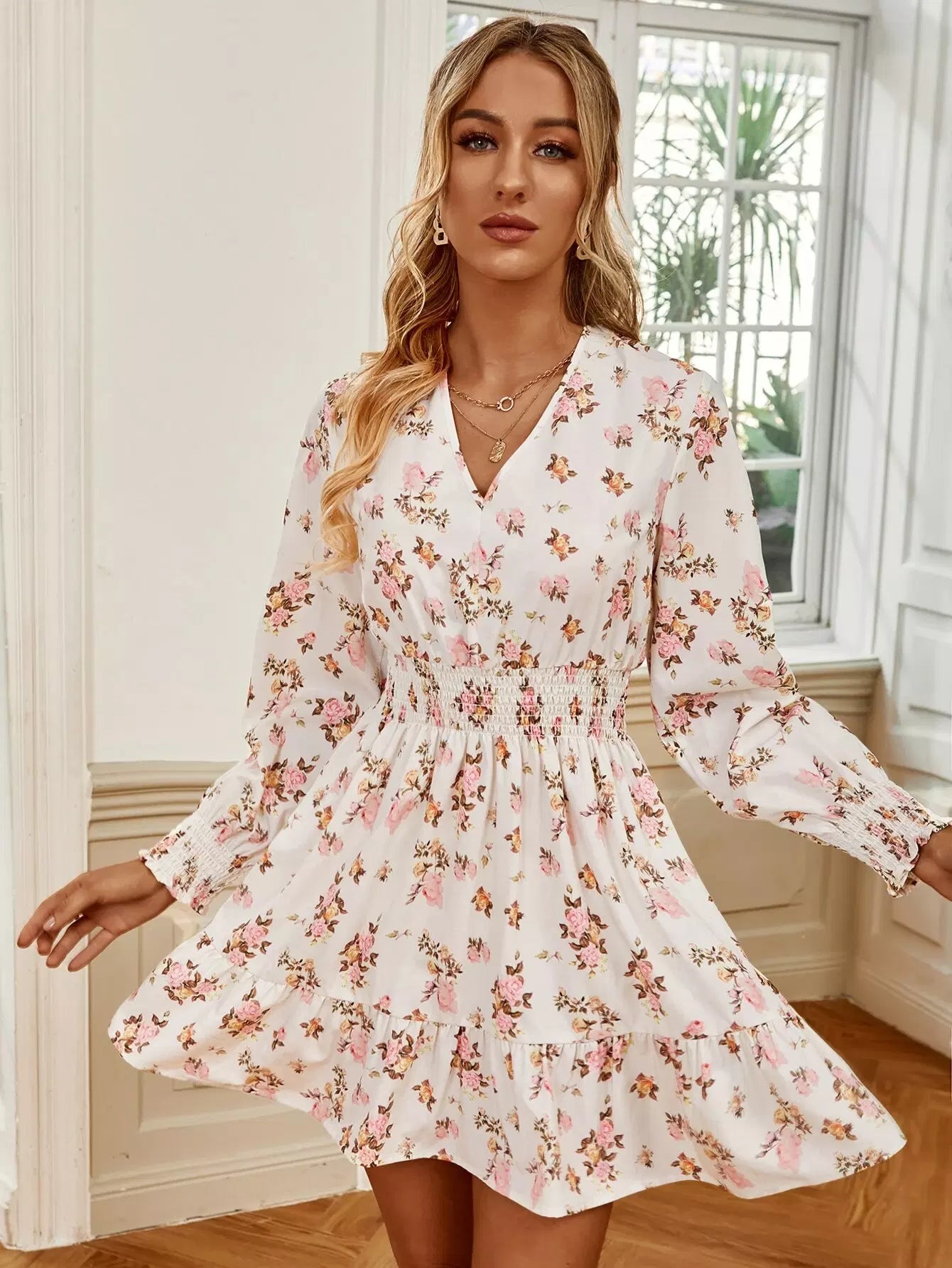 النساء - فستان على شكل حرف A مزين بالزهور بالكامل