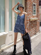 فستان كامي بأشرطة سلسلة مطبوع فوقها بالكامل