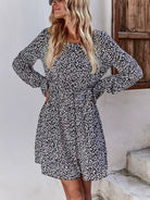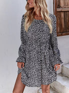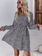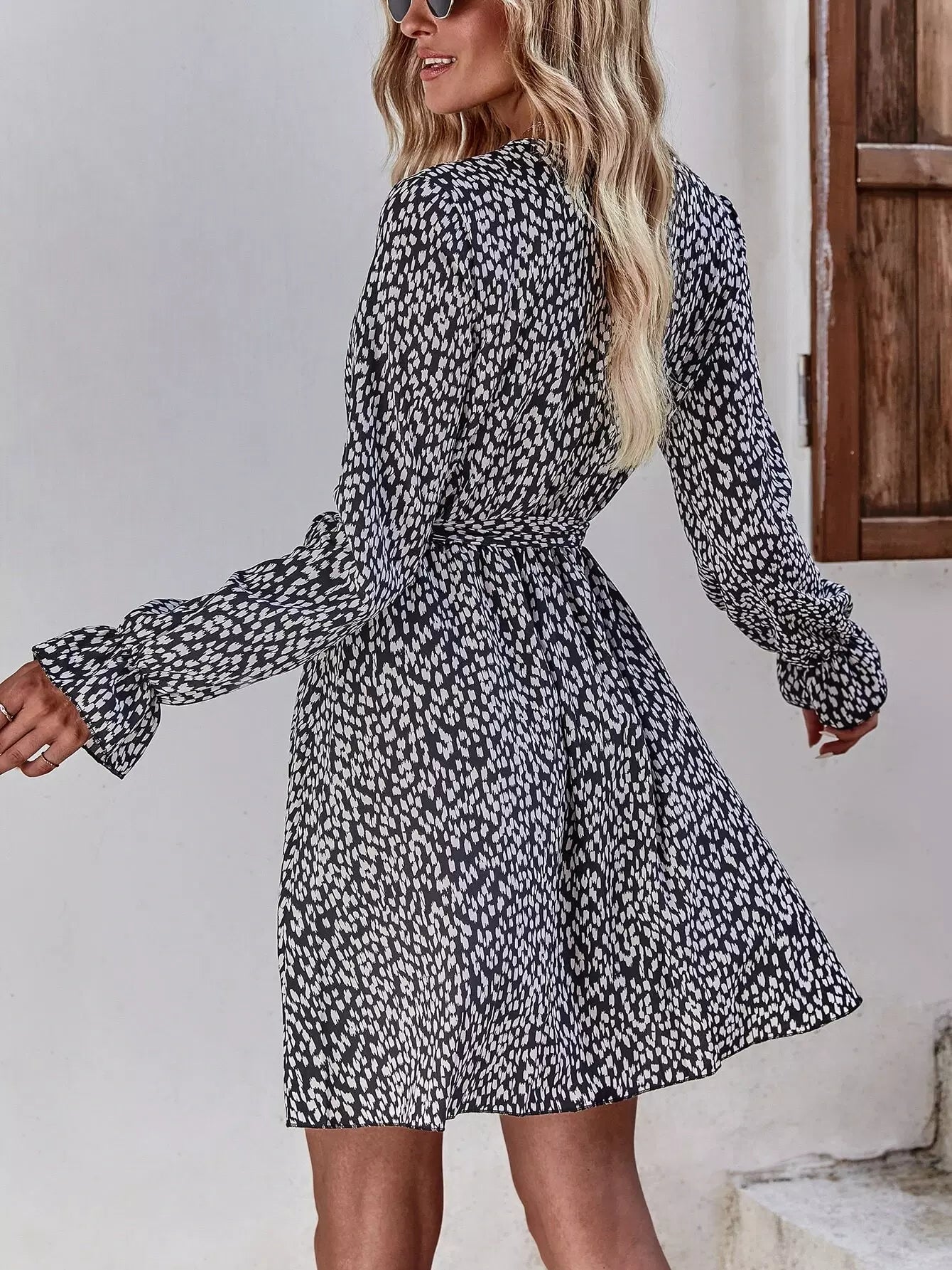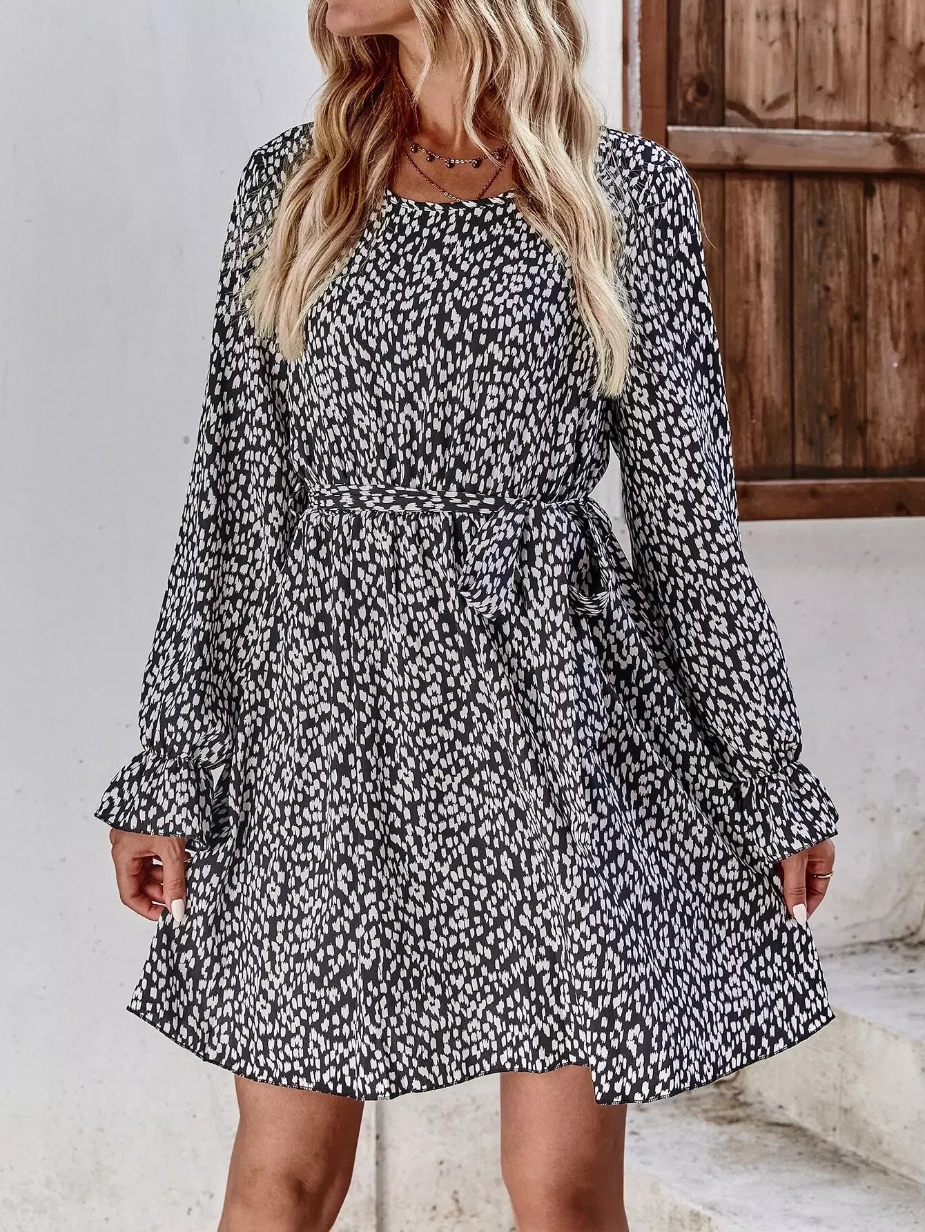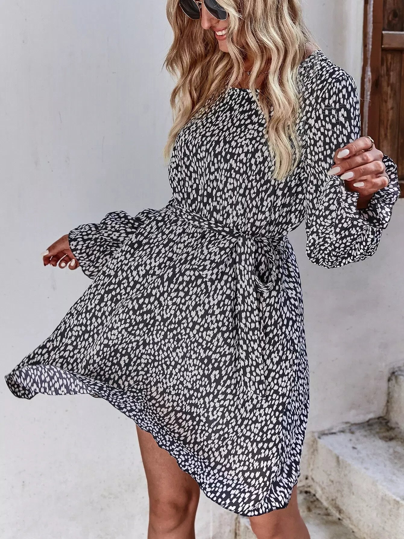 فستان بأكمام واسعة وطبعة كاملة بدون حزام