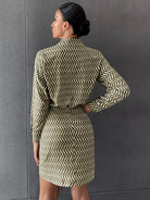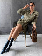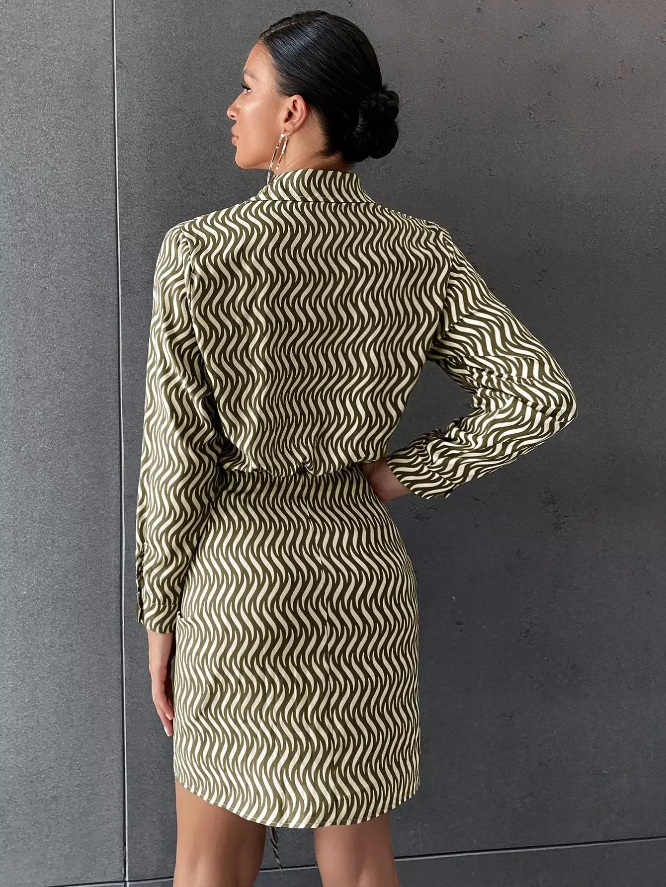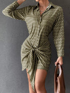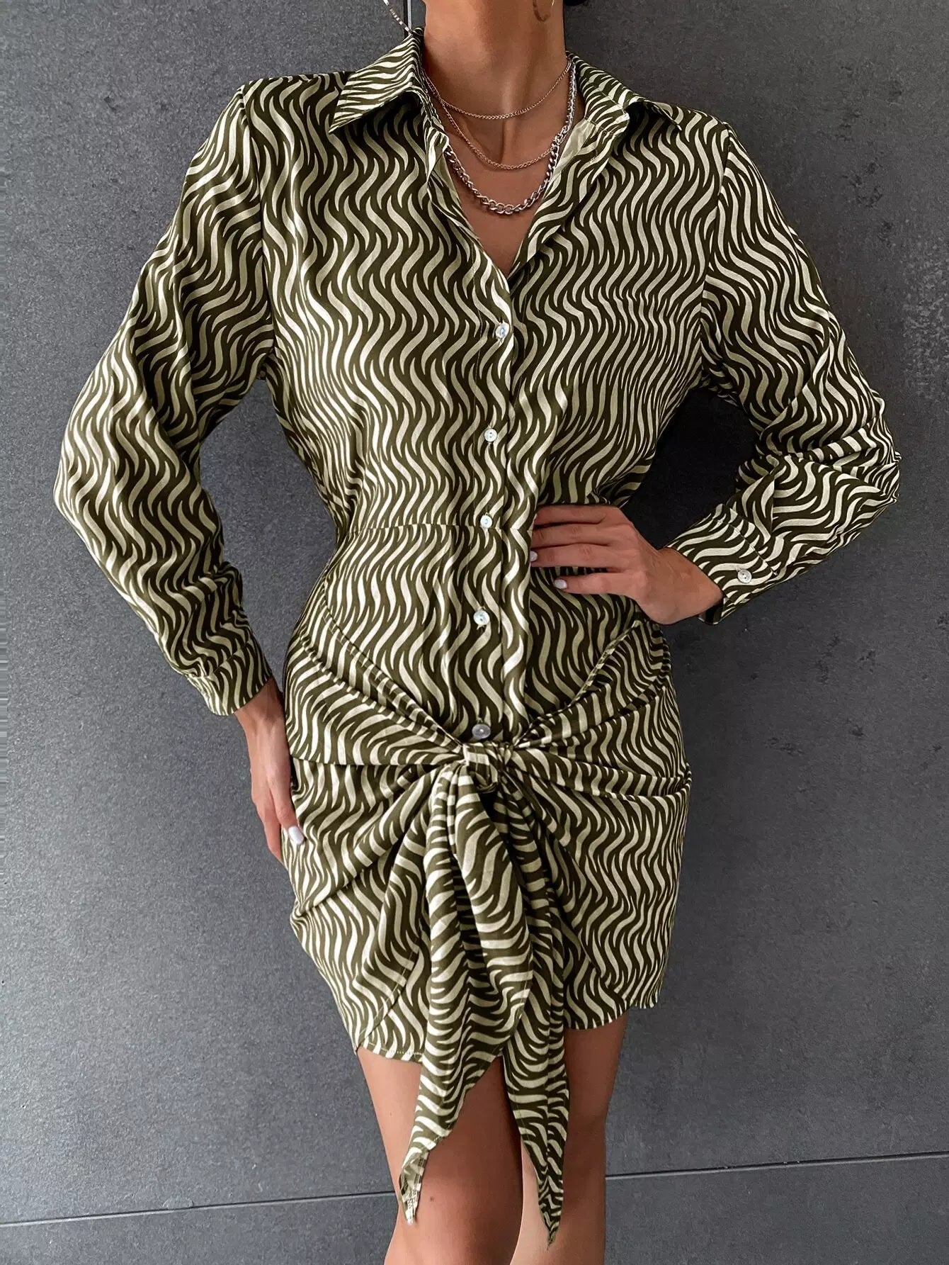 فستان قميص مطبوع بالكامل بطبعة على شكل عقدة أمامية