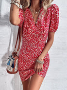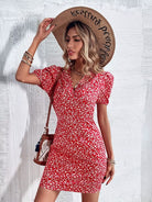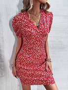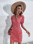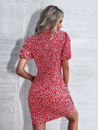فستان بأكمام منفوشة مطبوع عليها بالكامل