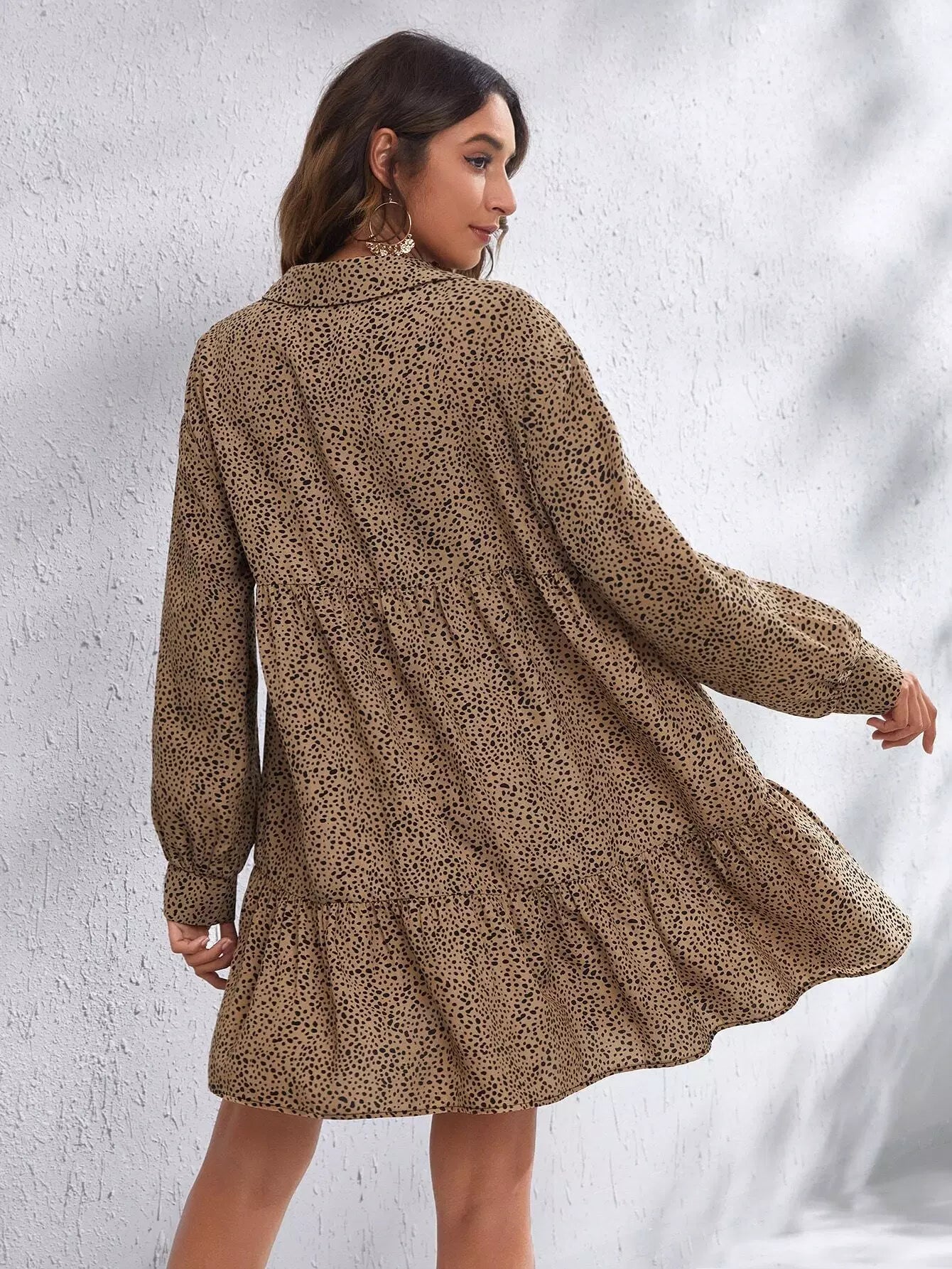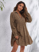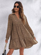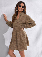 فستان قصير بطبعة كاملة مع كشكشة