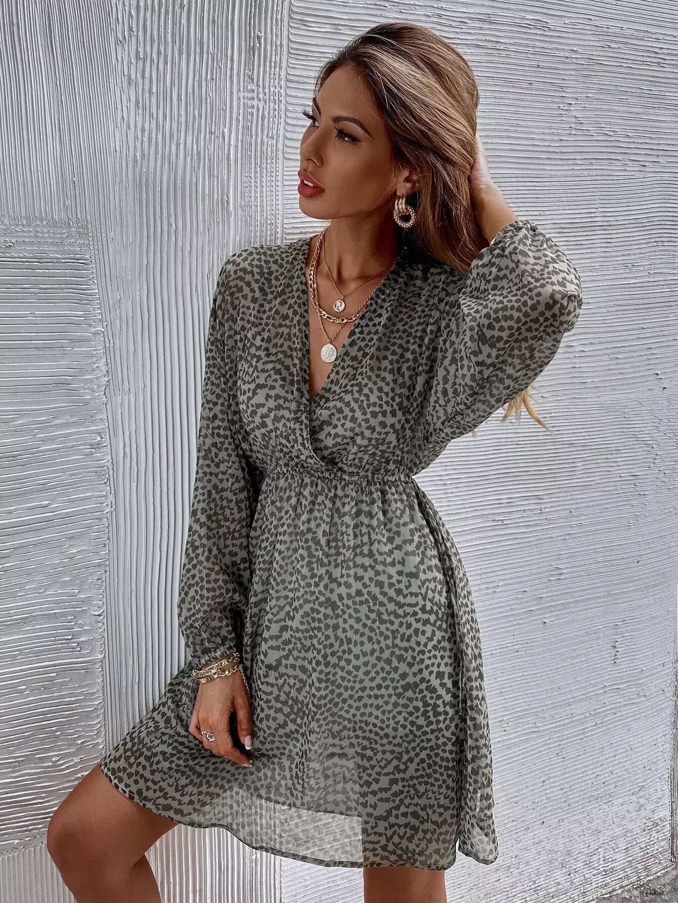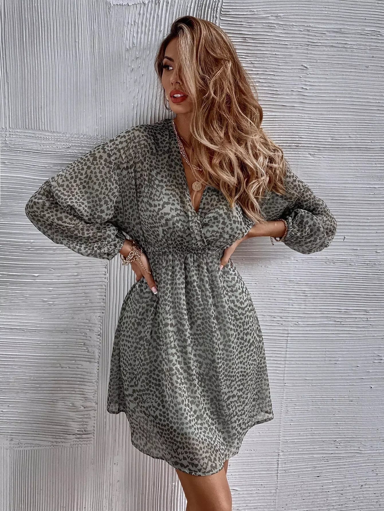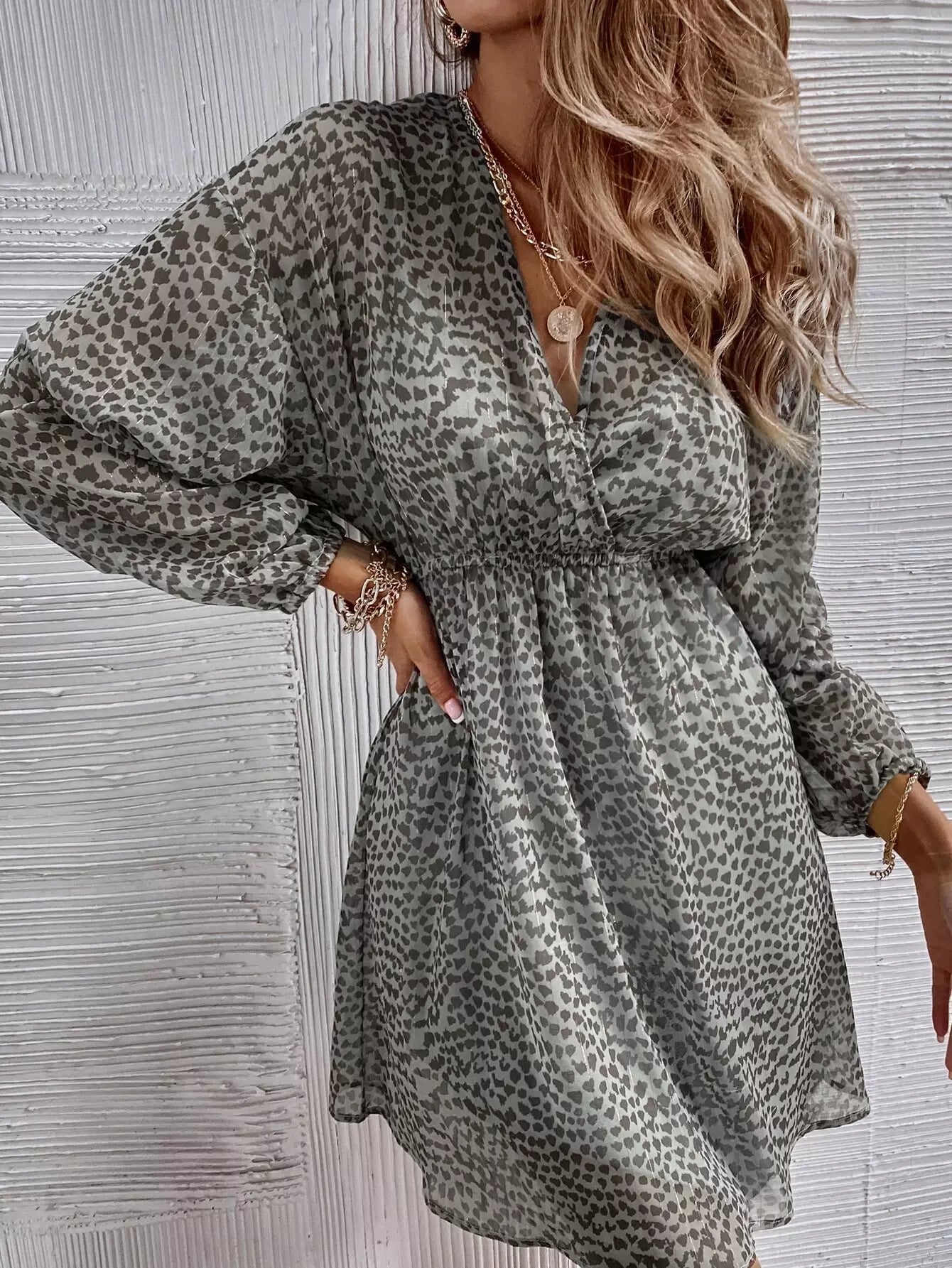 للنساء - فستان من الشيفون بخيط معدني أمامي مطبوع بالكامل