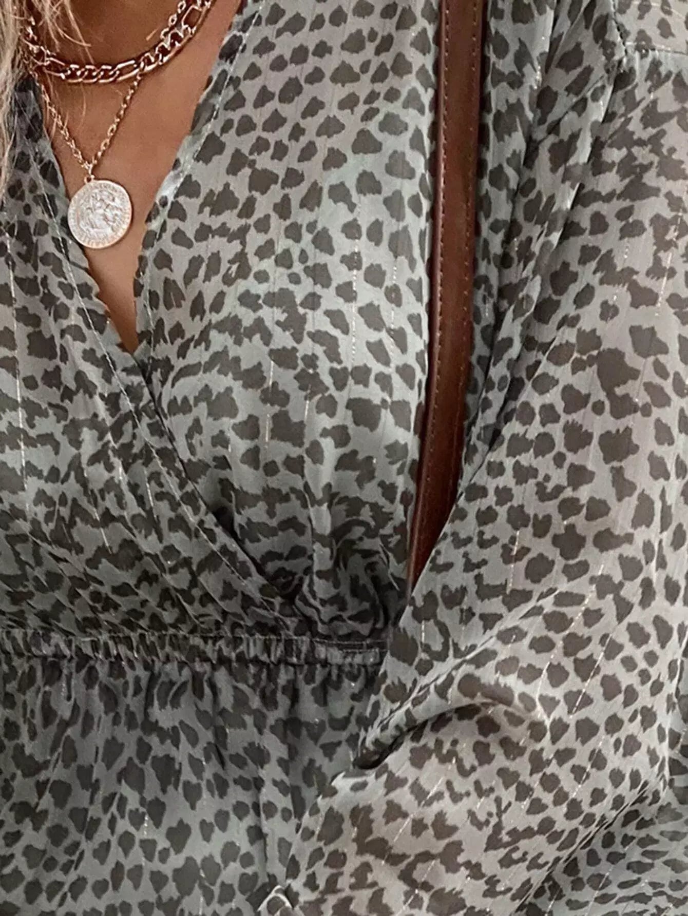 فستان شيفون مطبوع بطبعة من الأمام بخيوط معدنية من الشيفون