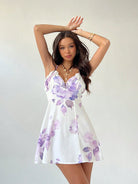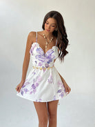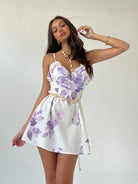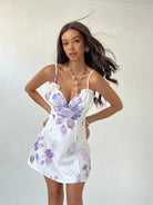 فستان Aloruh النسائي القصير ذو الأشرطة الرفيعة وطبعة الأزهار وحواف الكشكشة
